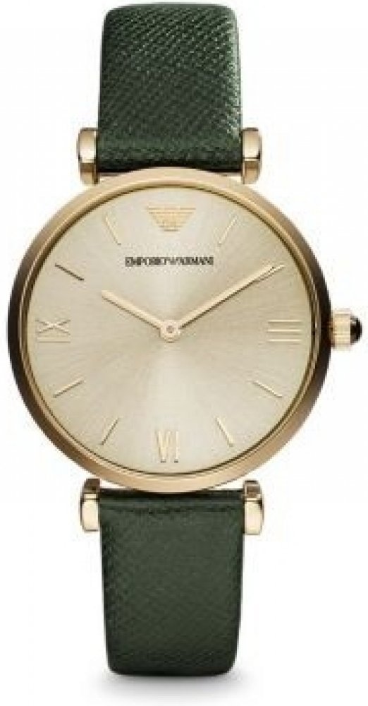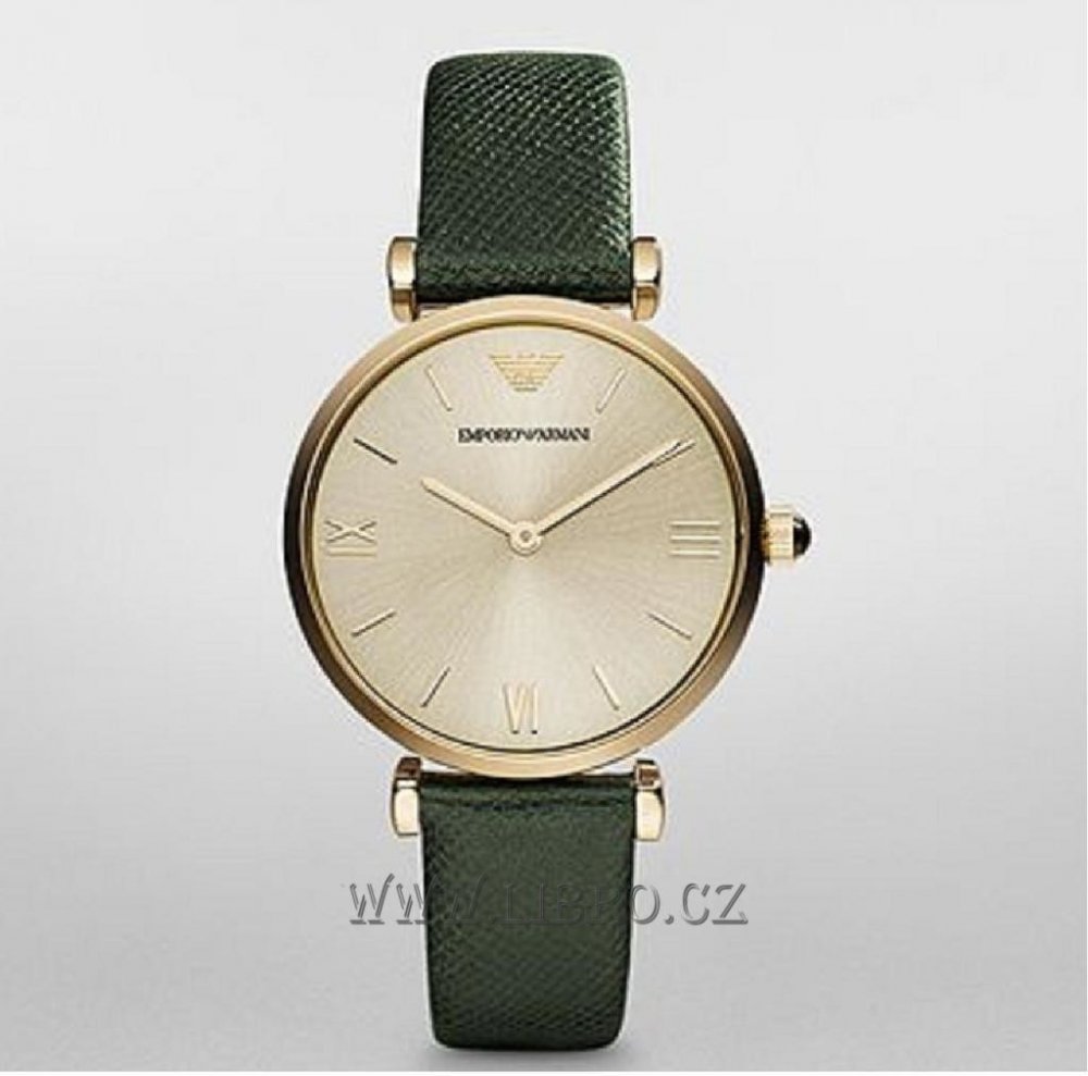 Emporio Armani analogové kůže elegantní dámské bateriové - quartz ocel 30 m minerální kulaté zelená zlatá 1.4 cm
