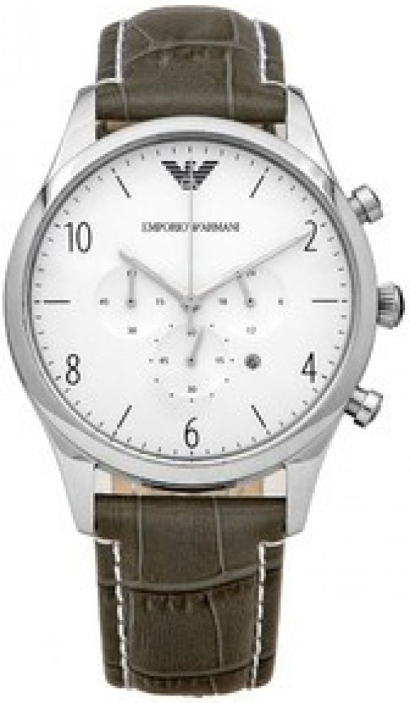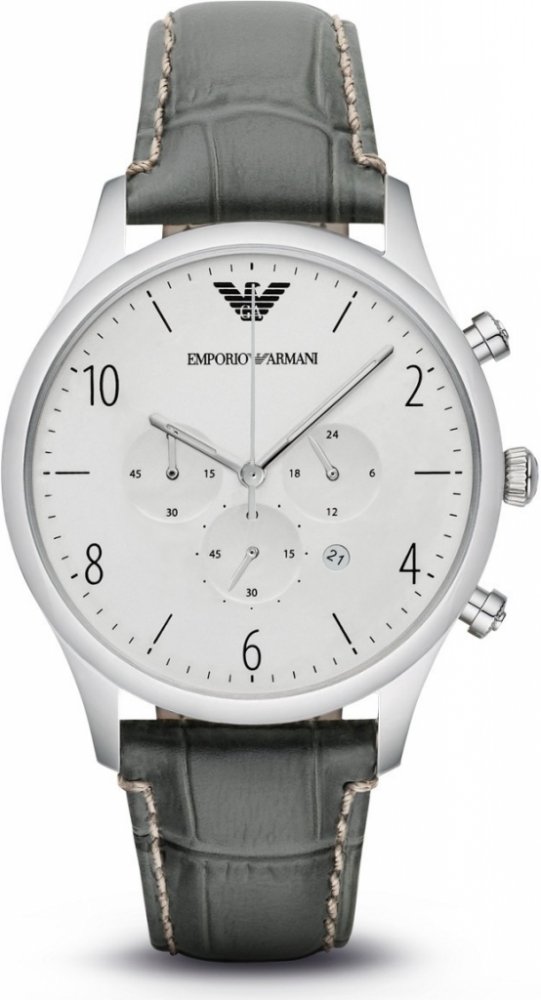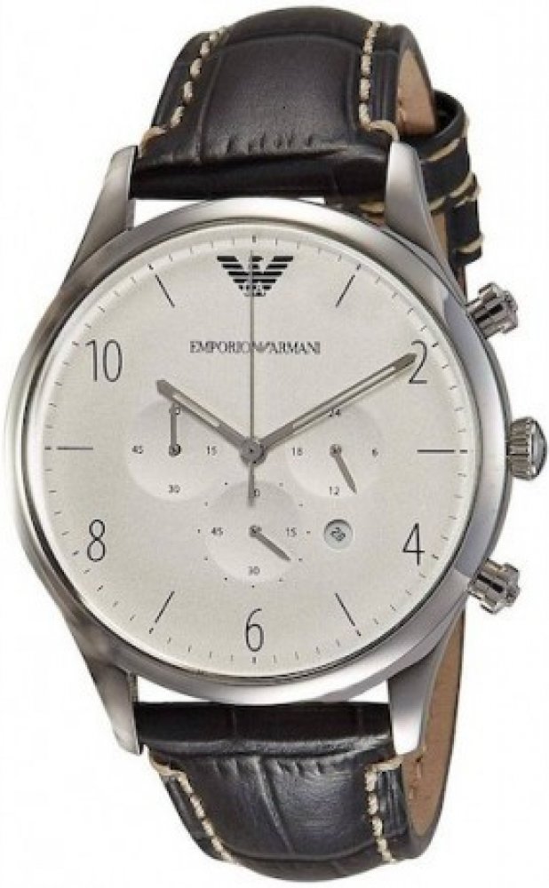 Emporio Armani AR1861 ZÁKLADNÍ PARAMETRY: Určení: Pánské Pouzdro:Z ušlechtilé oceli Řemínek:Kožený Sklo:Tvrzené minerální Ciferník:Stříbrný Vodotěsnost:5atm šířka ciferníku: 43 mm výška ciferníku: 12 mm FUNKCE: Datum Stopky Čas: analogové zobrazení Napájení QUARTZ: životnost baterie cca 2 roky Záruka: 2 roky S hodinkami je dodáváno originální příslušenství, včetně boxu, instrukcí a originalního bookletu značky. Značka Emporio Armani Počátkem byl rok 1973, kdy se Giorgio Armani rozhodl založit vlastní značku, která se později rozrostla v obrovské módní impérium zahrnující také hodinky. Neobyčejně bohatý a rozmanitý profesní vývoj vedl Armaniho k likvidaci zbytečností, zdůrazňuje hlavně pohodlnost a sílu elegance nejdůležitějších částí jeho oděvů. Tento filosofický přístup je považován za základ jeho návrhářství a jeho úspěchu ve světě módy. V roce 1981 Armani rozšířil své impérium o značku Emporio Armani, která byla více zaměřena na unisexové oblečení. Byla mladší, sportovnější, uvolněnější a hlavně dostupnější.