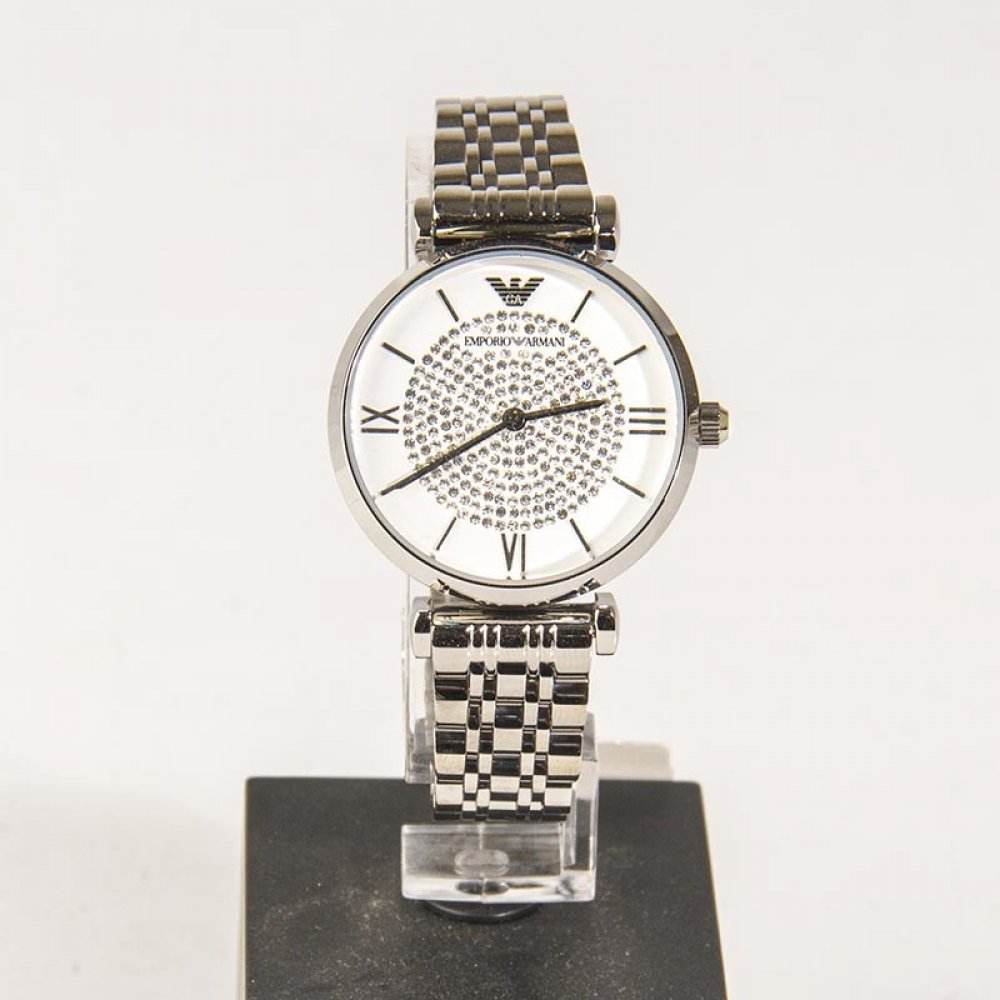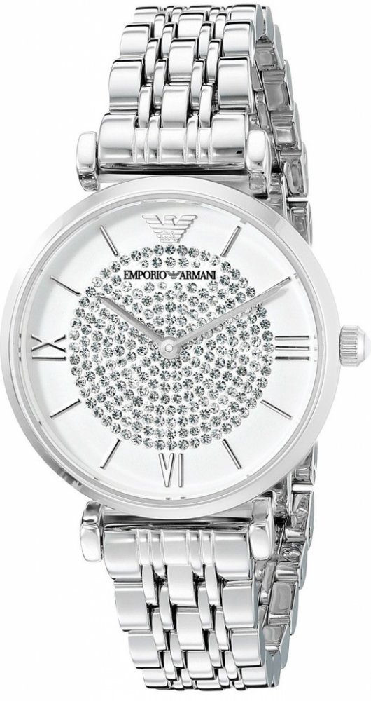 Emporio Armani analogové ocel elegantní dámské bateriové - quartz pro běžné použití (30–50 m) 32.0 mm ocel 30 m bateriové 75 g minerální krystaly T-Bar kulaté stříbrná bílá překlápěcí spona 1.4 cm s římskými číslicemi stříbrná ocel 3.2 cm malé 730 d 8.0 mm 14.0 mm 9 mm 32 mm s nenáročnou údržbou (quartz) bez chytrých funkcí