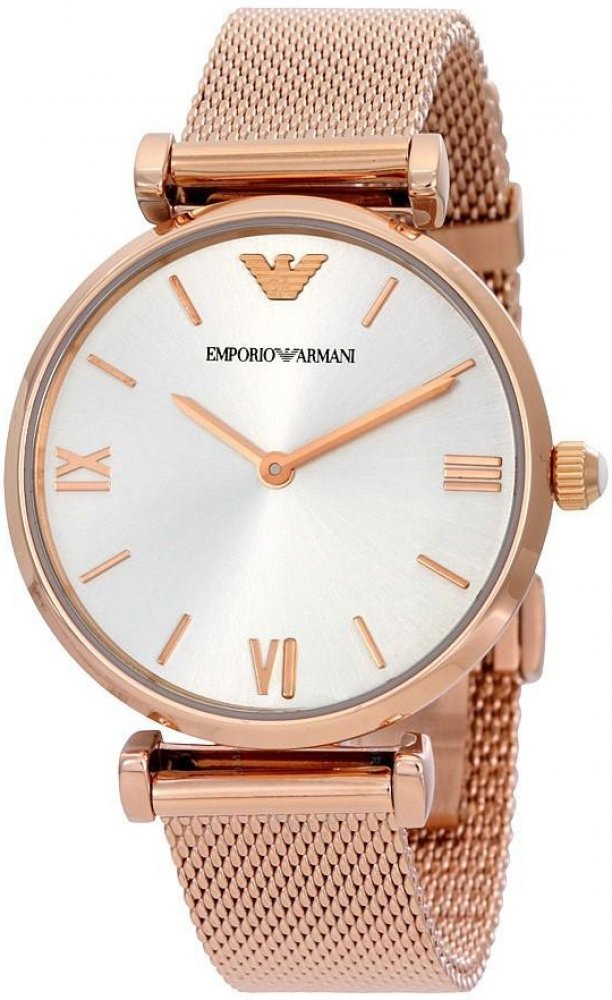 Emporio Armani analogové ocel elegantní dámské bateriové - quartz pro běžné použití (30–50 m) 31.0 mm ocel 30 m bateriové 59 g minerální bez osazení T-Bar kulaté růžová bílá překlápěcí spona 1.4 cm na ruku s římskými číslicemi 3.1 cm malé 730 d 8.0 mm 31.0 mm bez svícení s nenáročnou údržbou (quartz) bez chytrých funkcí