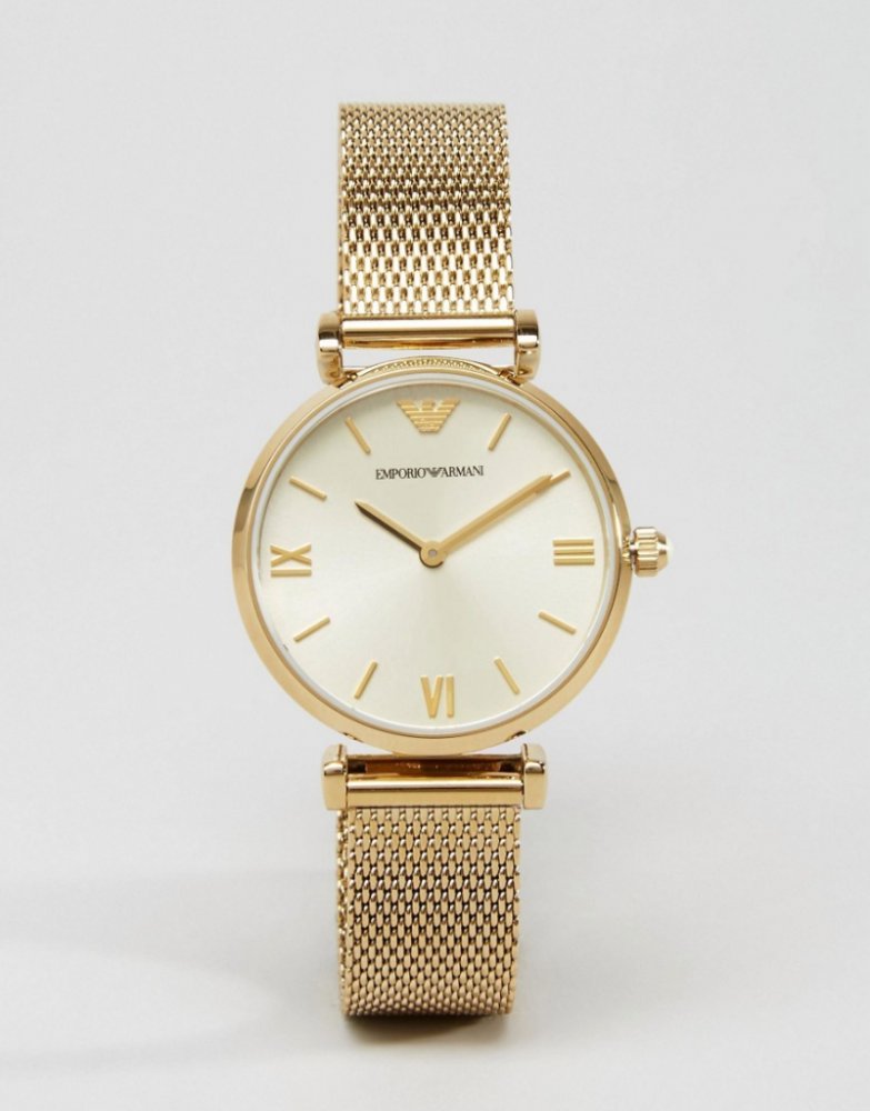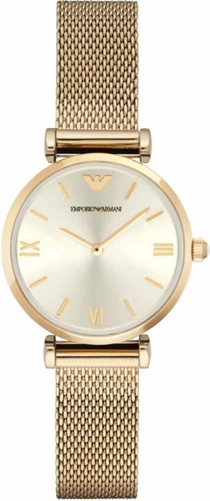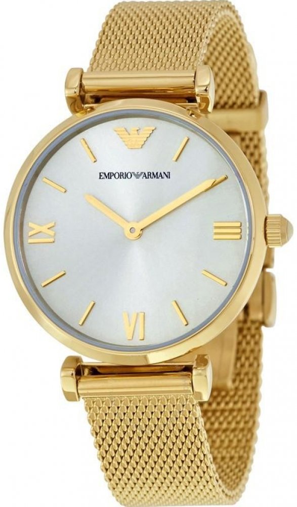 Emporio Armani analogové ocel elegantní dámské bateriové - quartz pro běžné použití (30–50 m) 32.0 mm ocel 30 m bateriové 0 g minerální bez osazení kulaté zlatá bílá posuvná spona 1.4 cm na ruku s římskými číslicemi zlatá 3.2 cm malé 730 d 8.0 mm bez svícení s nenáročnou údržbou (quartz) bez chytrých funkcí