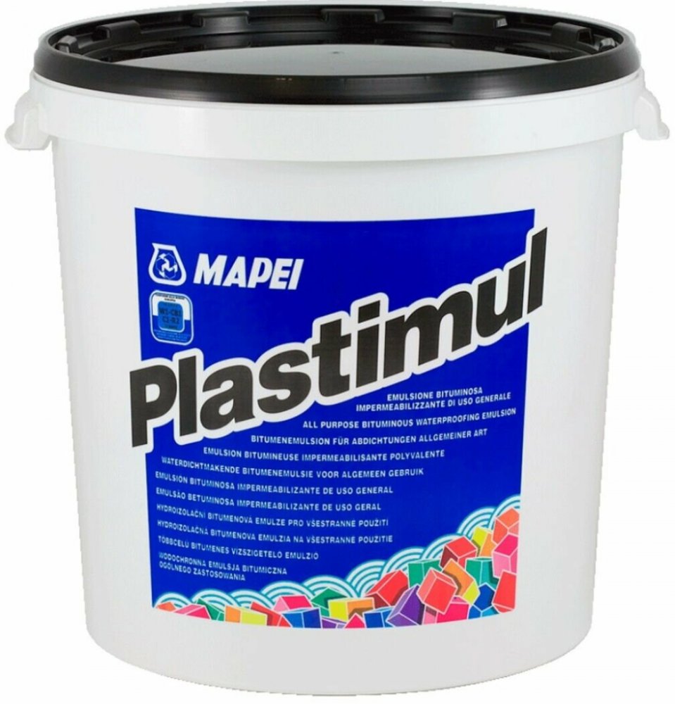 Plastimul je univerzální bitumenová hydroizolační emulze určená k těsnění základů a nosných zdí. Má tixotropní konzistenci a lze ji snadno nanášet jako hydroizolační vrstvu na spádované nebo svislé plochy.PoužitíTěsnění zdiva “za studena” nebo betonových ploch přicházejících do styku se zeminouTěsnění betonových nádrží nebo jímek, pokud přicházejí do styku s mírně kyselou nebo alkalickou vodouTěsnění betonových střešních žlabů a komínůTěsnění plochých nebo oblých střech a nepochůzných terasVlastnostiPlastimul je pasta bez obsahu rozpouštědel, složená z vybraných živic emulgovaných ve vodě, jemnozrnných plniv a přísad vyrobených podle receptury vyvinuté ve výzkumných laboratořích firmy MAPEI. Technické parametryKonzistence: hustá pastaBarva: černáBalení: 12 kg