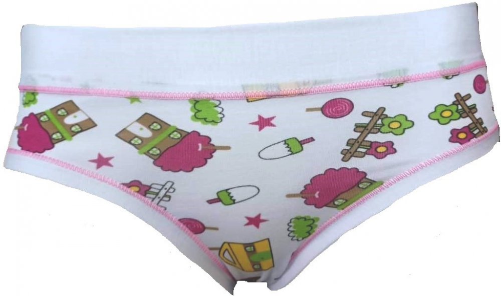Dívčí kalhotky Emy Lovelygirl mají na přední straně vzor. Velmi příjemné kalhotky se širší gumou v pase. Zadní strana je bez obrázku, pouze s výšivkou výrobce Emy. Velmi oblíbený a pohodlný střih. Originální dáreček pro vaši holčičku.Italský výrobce.