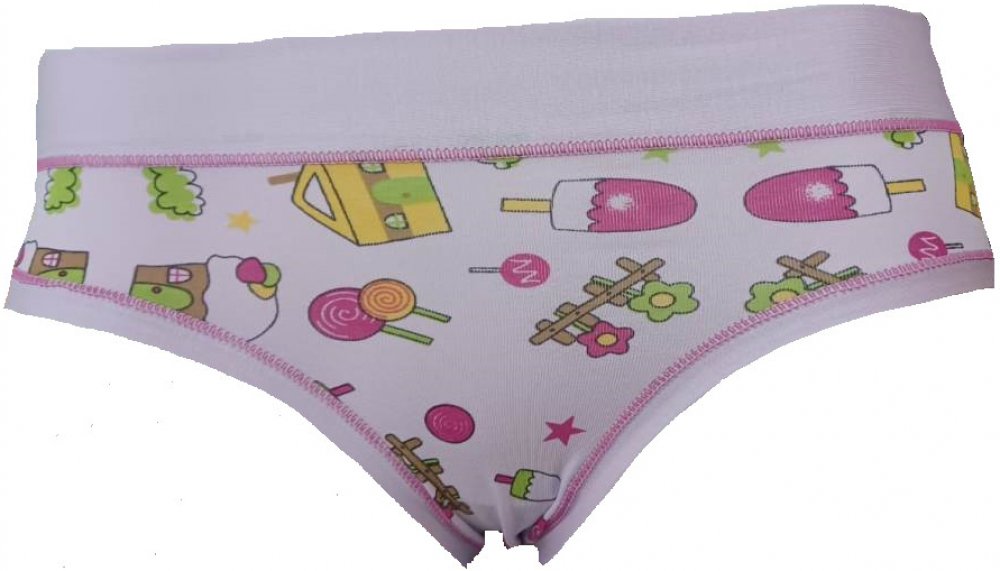 Dívčí kalhotky Emy Lovelygirl mají na přední straně vzor. Velmi příjemné kalhotky se širší gumou v pase. Zadní strana je bez obrázku, pouze s výšivkou výrobce Emy. Velmi oblíbený a pohodlný střih. Originální dáreček pro vaši holčičku.Italský výrobce.