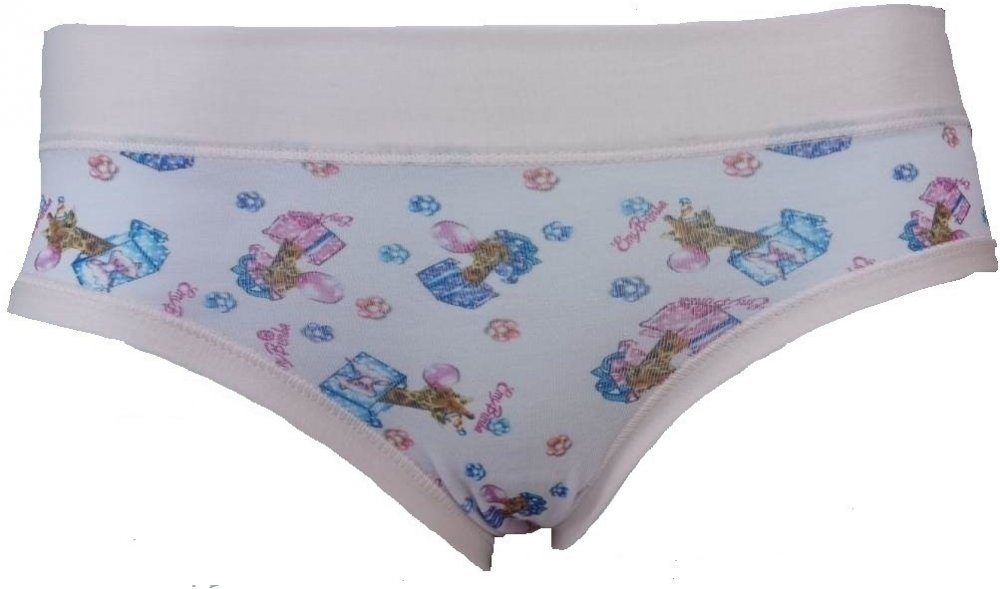 Dívčí kalhotky Emy Lovelygirl mají na přední straně vzor. Velmi příjemné kalhotky se širší gumou v pase. Zadní strana je bez obrázku, pouze s výšivkou výrobce Emy. Velmi oblíbený a pohodlný střih. Originální dáreček pro vaši holčičku.Italský výrobce.