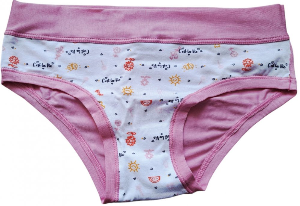 Dívčí kalhotky Emy Bimba zdobené obrázky s motivem léta, bavlněné s plochými lemy a bez gumiček, velmi pohodlné, od 2 do 15 let