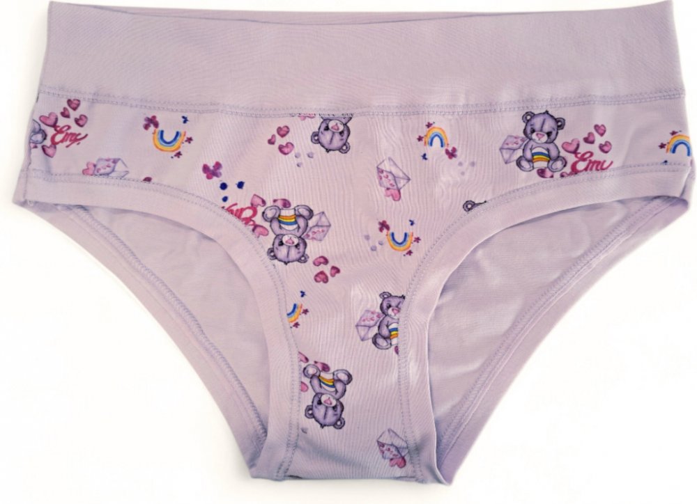 Dívčí kalhotky Emy Bimba zdobené roztomilými obrázky, bavlněné s plochými lemy a bez gumiček, velmi pohodlné, od 2 do 15 let
