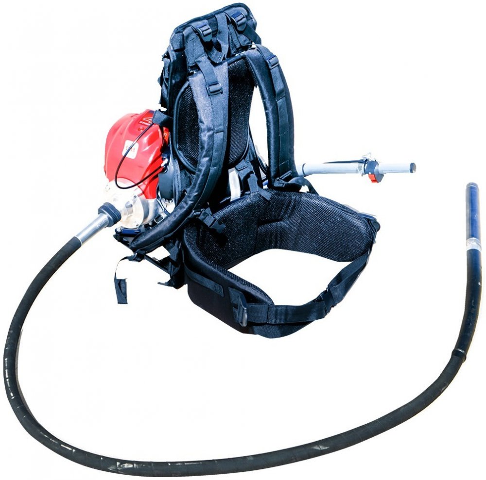 Batoh se skládá z přenosného vibrátoru, poháněného benzínovým motorem, který je bezpečně namontován na