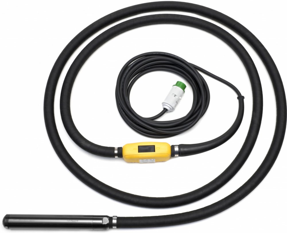 Vysokofrekvenční ponorný vibrátor o průměru hlavice 65 mm a délkou hacice 5 m. Tepelná ochrana.