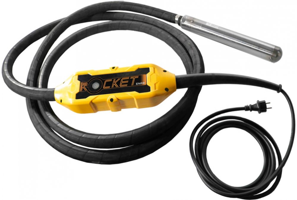 Vysokofrekvenční ponorný vibrátor o průměru hlavice 50 mm a délkou hadice 5 m. Tepelná ochrana, ochrana proti přetížení a ochrana proti poškození elektrické izolace.