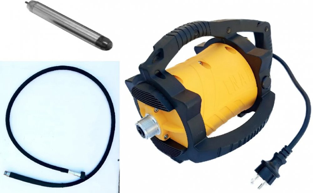 Sada pro zhutňování betonových směsí. Sada obsahuje: elektrická pohonná jednotka Enar DINGO, ohebná hřídel TDXE 1 m, vibrační hlavice AX 25. Napájení: 230 V ~50 Hz; Max. otáčky pohonu: 18 000 ot./min.; Zhutnění: 10 m³/hod.