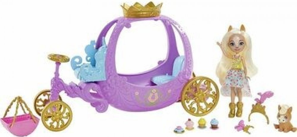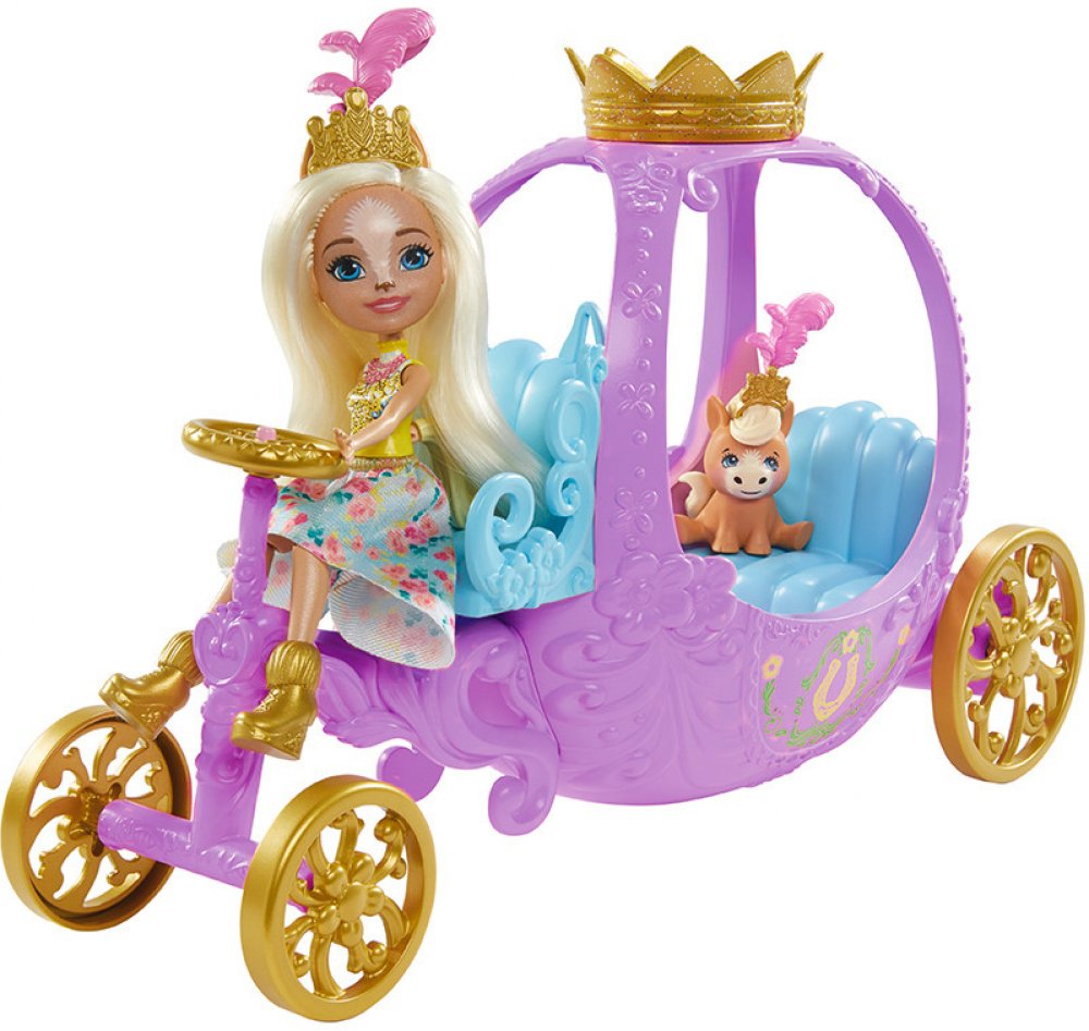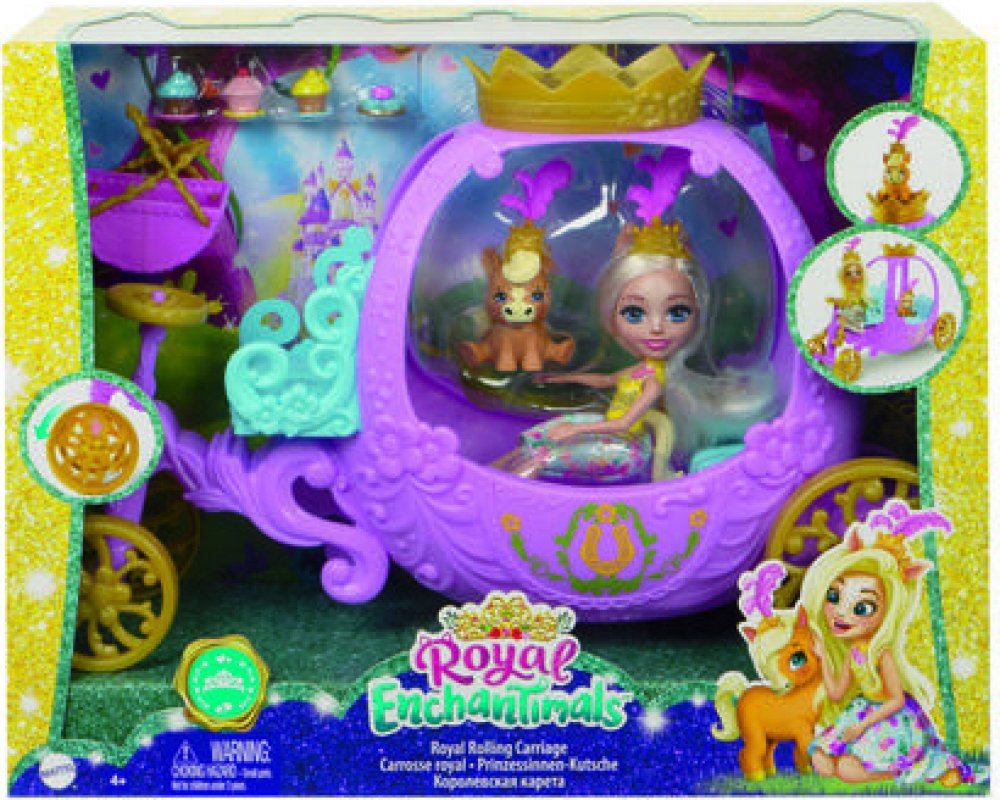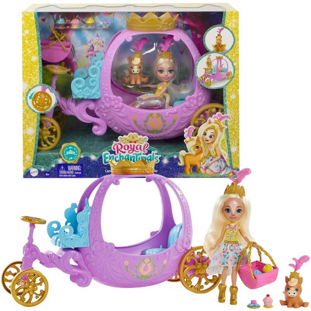 Cestujte světem Enchantimals ™ s panenkou Peola Pony ™ a jejím královským kočárem. Tento kočár, jenž je majestátně navržen se zlatými koly, které se opravdu otáčejí a královskými detaily, volá po královských dobrodružstvích. Se spoustou sedátek na sedadle kočího, na zadním sedadle a dokonce i na kočáru – děti mohou vyzvednout další přátele Enchantimals ™ (každý se prodává samostatně, podle dostupnosti). Další menší příslušenství, jako je košík a dezerty, pro více možností hraní. Než vyrazíte na královský ples, udělejte si piknik. Barvy a dekorace se mohou lišit. Panenky nemohou zůstat samy. Věk: 4 +