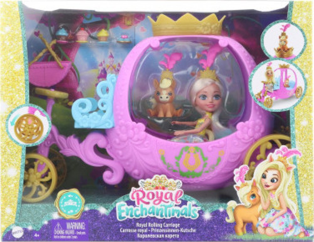 Cestujte světem Enchantimals ™ s panenkou Peola Pony ™ a jejím královským kočárem. Tento kočár, jenž je majestátně navržen se zlatými koly, které se opravdu otáčejí a královskými detaily, volá po královských dobrodružstvích. Se spoustou sedátek na sedadle kočího, na zadním sedadle a dokonce i na kočáru – děti mohou vyzvednout další přátele Enchantimals ™ (každý se prodává samostatně, podle dostupn...