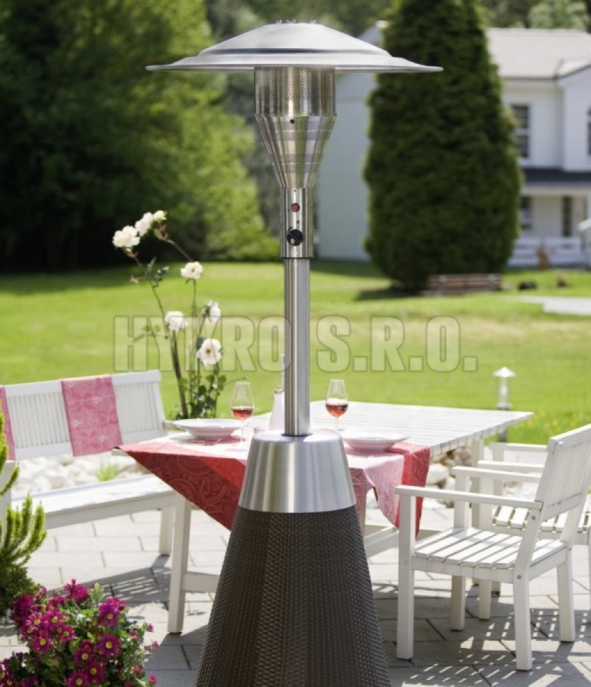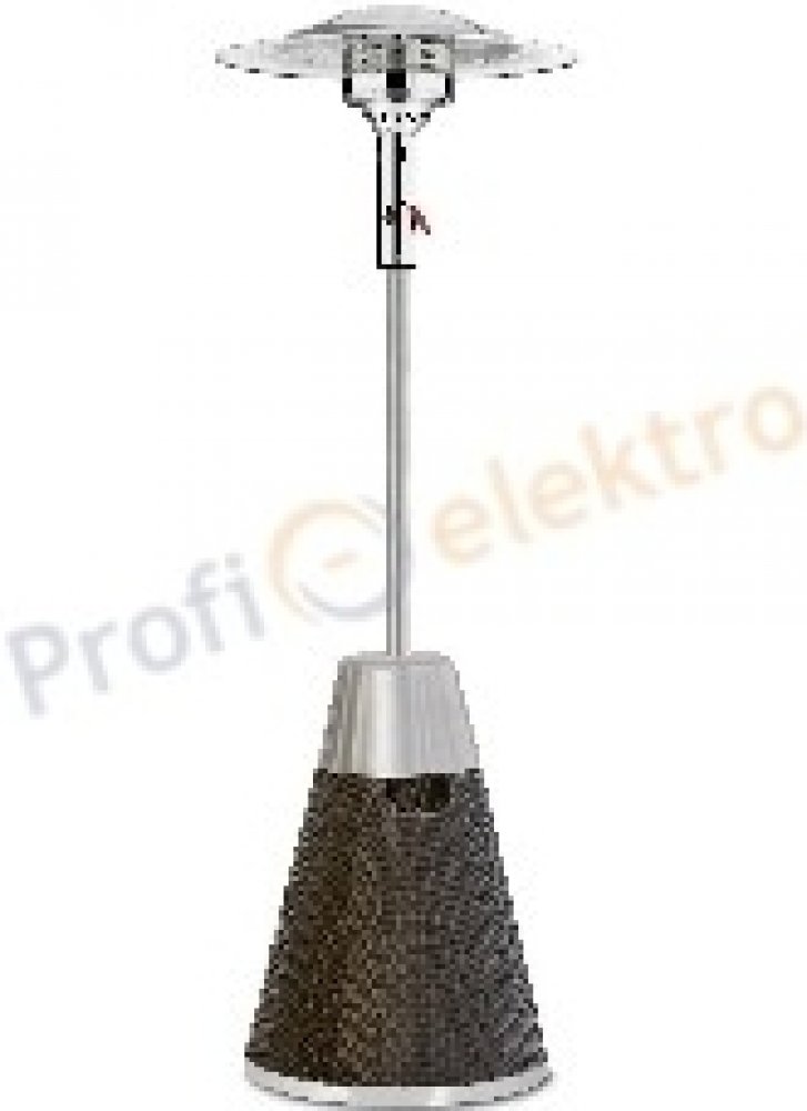 Tepelný plynový zářič (topidlo) Enders RATTAN Reflektor zářiče ø 88 cm Zářič má kolečka pro transport Zářič má piezo zapalování Výkon zářiče 3 - 8 kW Spotřeba zářiče max 582 g/h Délka provozu zářiče 50 - 19 h Rozsah záření zářiče ø 10 m Celková výška zářiče 230 cm Boky podstavce jsou z napodobeniny ratanu. Sloupek je vyroben z leštěné oceli. Lemy stojanu jsou vyrobeny z lakované oceli. Součástí ba...