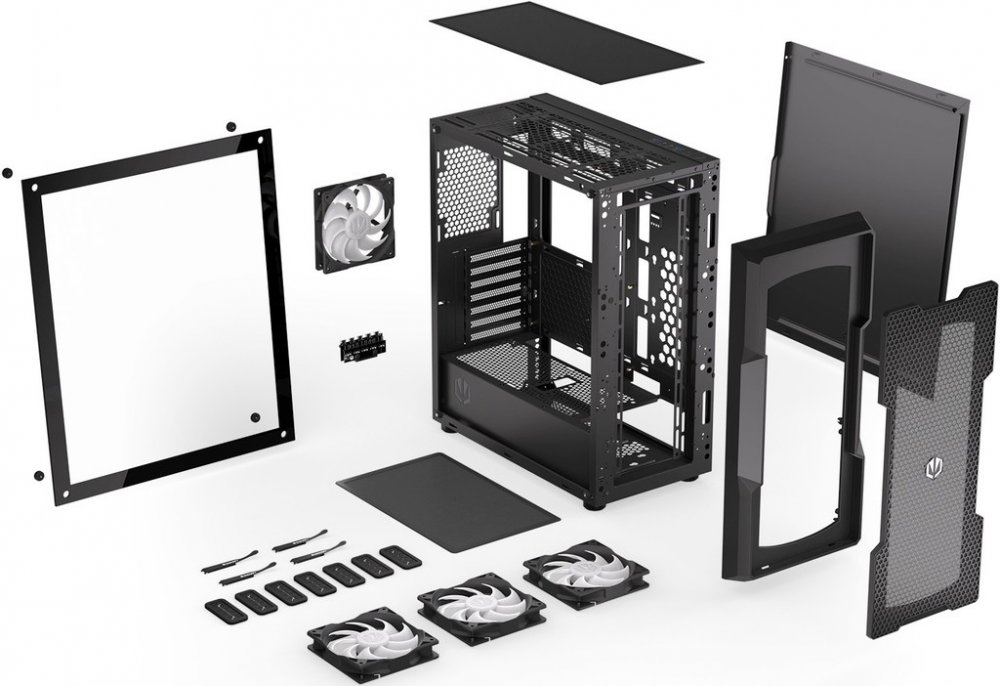 Midi / MiddleTower Endorfy ATX, mATX, mITX černá 2 ATX seshora temperované sklo 442 mm 472 mm 220 mm 7.3 kg 370 mm 162 mm 296 mm 8 4 120mm, 140mm 360 mm 2 2