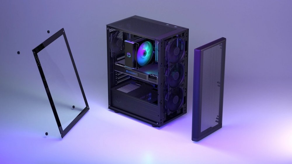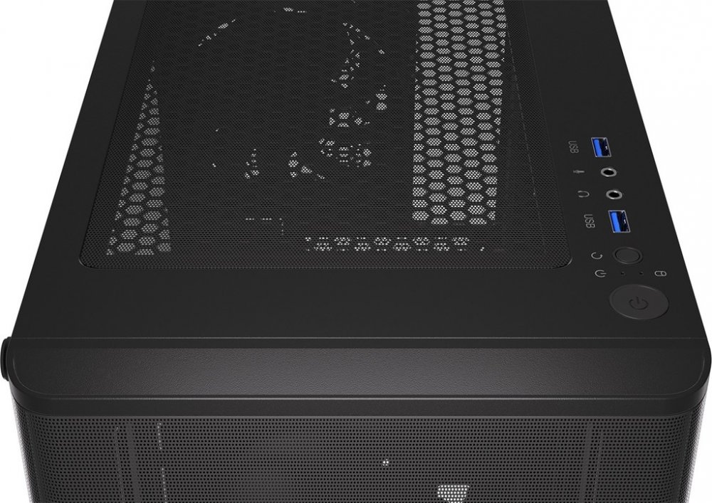 Skříň formátu Middle Tower s průhlednou bočnicí z tvrzeného skla nabízí dvě 2,5" pozice pro SSD disky a jednu 3,5" pozici pro pevný disk. Na horní části se nachází dva USB 3.0 porty, sluchátkový výstup a audio vstup pro mikrofon. Vybavena je čtyřmi 120 mm ventilátory, které spolu s perforovaným čelním panelem zajišťují dostatečné proudění vzduchu. Důmyslné řešení umožňuje po...