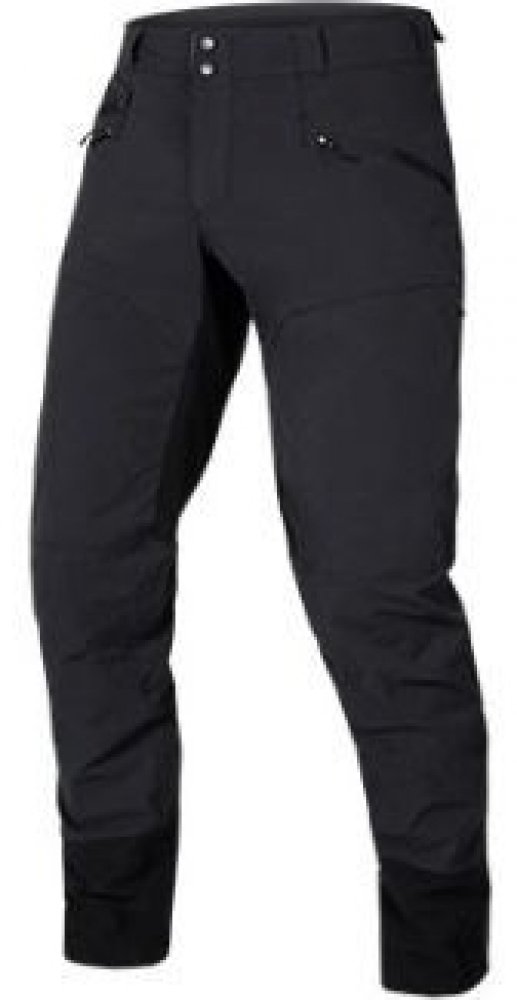 "Kalhoty Endura Singletrack II jsou nekompromisní výbava na trailové vyjížďky. Jsou vyrobené z pevného a odolného nylonového materiálu, který je napovrchu opatřen voděodolnou úpravou DWR. Kolena jsou tvarována a navíc opatřena pružnou plochou, takže se pod ně vejdou pohodlně i chrániče a nebudou omezovat při šlapání. Kalhoty jsou opatřené i kapsami a větráním krytým zipem.