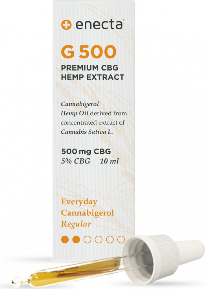 Konopný výtažek Premium CBG Olej G 500 nabízí jednoduchý způsob, jak dávkovat a užívat CBD. Míra absorpce je mnohem vyšší, když se konopný výtažek užívá v tekuté podobě. S prémiovým konopným výtažkem CBG Olej G 500 od Enecty se snáze upravuje dávkování – dávku si můžete kdykoli zvýšit nebo snížit, když budete používat kapátko.