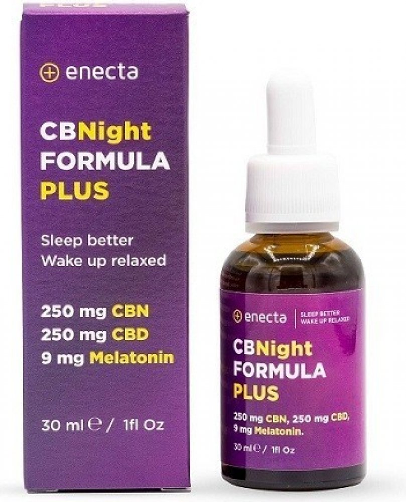 CBNight konopný olej obsahuje (v 1 ml) 0,3 mg melatoninu a 8,33 mg CBD a 8,33 mg CBN. Kromě primární funkce navození a udržení spánku, pro kterou je olej určen, má CBNight PLUS olej analgetické a protizánětlivé vlastnosti díky samotné povaze kanabinoidů obsažených v oleji. Přítomnost CBD navíc pomáhá v případech úzkosti a chronického stresu, snižuje hladinu fyzického a svalového napětí.