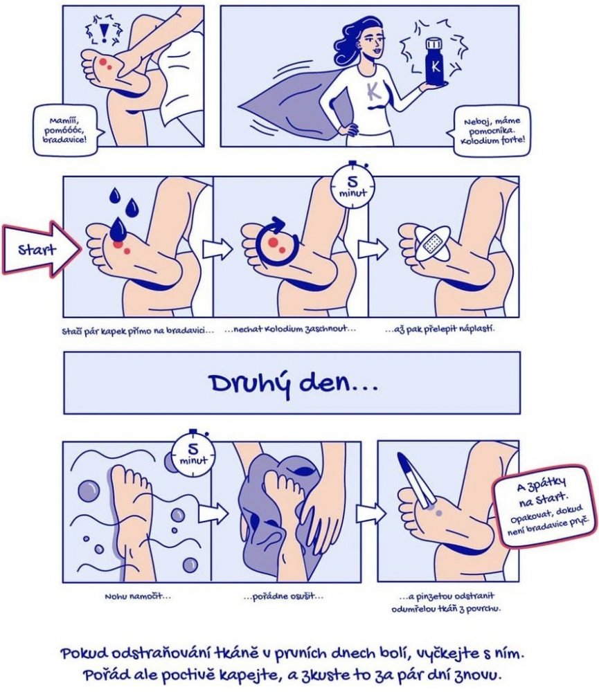 Aplikace se prová-dí opakovaně, až se nechá zrohovatělá kůže bezbolestně odstranit.