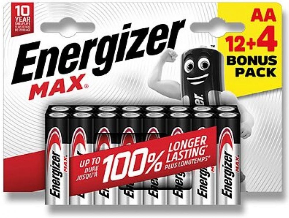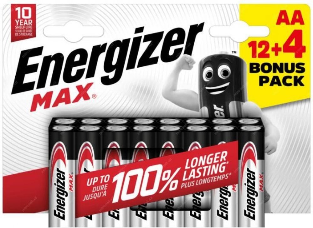 Rodinné balení 12+4 ks zdarma jednorázových baterií Alkaline Power tužka (AA), alkalický článek, napětí až 1,5 V.