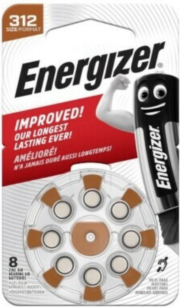 Energizer Baterie pro audioprotetiku Zinc Air 312 s nejdelší životností ve velikosti 312 vůbec.Baterii aktivujete odstraněním krycího proužku a tím umožníte, aby se mohl vstřebávat vzduch do těla baterie. Baterie jsou odolné vůči mrazu a vyšším teplotám.