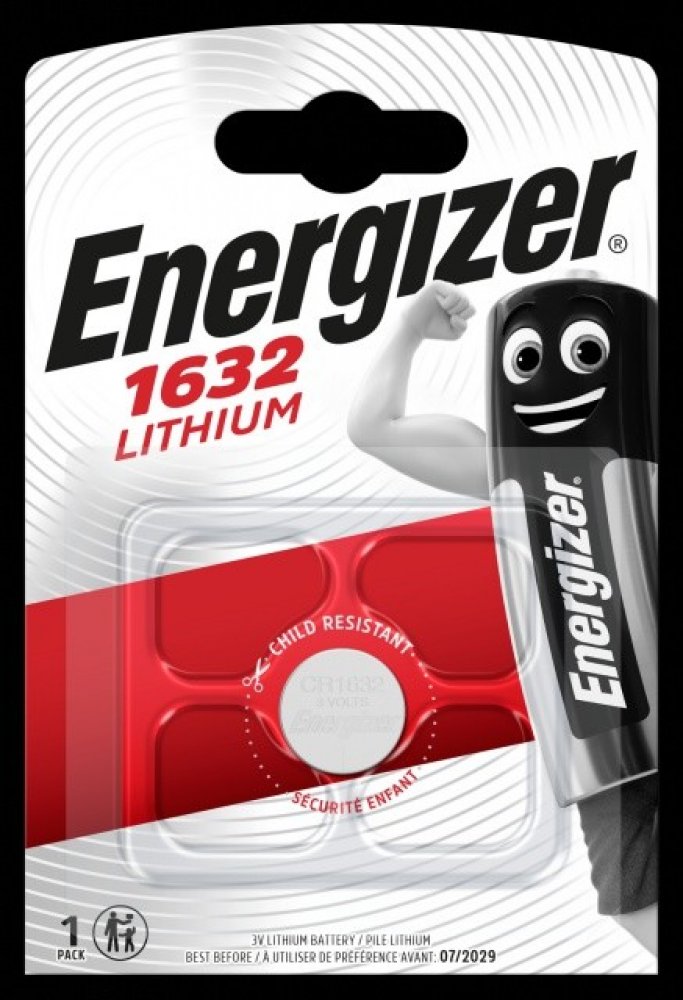 Hlavní vlastnosti knoflíkové baterie Energizer Knoflíková baterie CR1632 do hodinek, kalkulaček a podobných zařízení Typ článku: Li Knoflíková baterie Energizer je jednorázová Disponuje napětím 3 V V balení najdete 1 knoflíkovou baterii