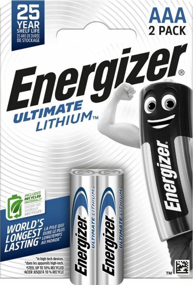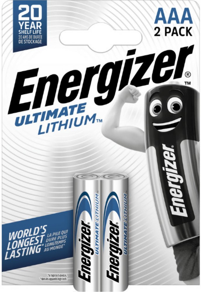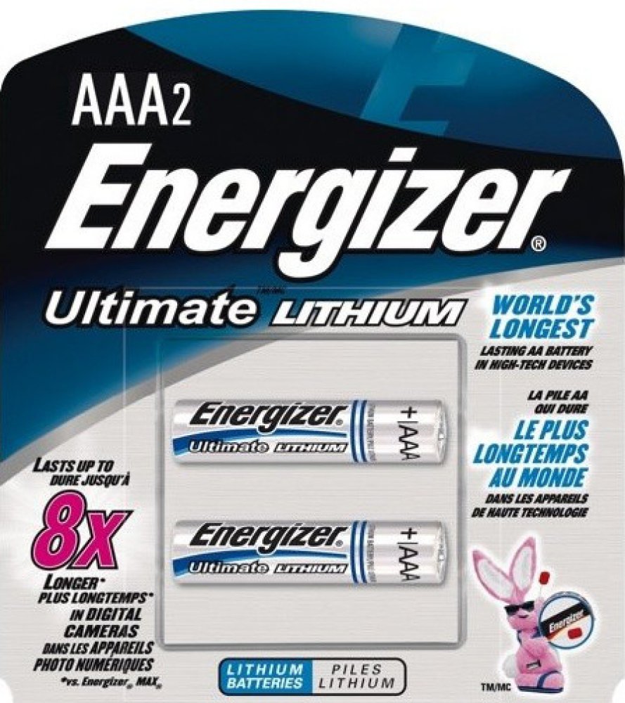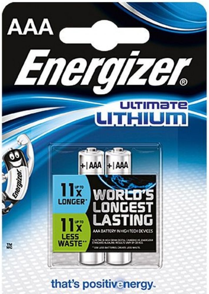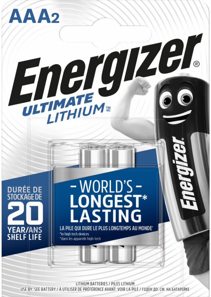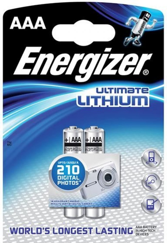 Lithiová baterie Ultimate Micro AAA od značky Energizer je určena uživatelům, kteří kladou důraz na maximální výkon. Díky jedinečné technologie lithiového článku se jedná o AAA baterii s nejdelší životností a nejpokročilejší technologií na celém světě. V digitálních fotoaparátech vydrží až 11krát déle a zároveň je o 33 % lehčí než běžné alkalické baterie velikosti AAA. Lithiová baterie je vhodná pro napájení high-tech zařízení s vysokou energetickou náročností, např. MP3 přehrávačů, klávesnic nebo GPS navigací. Baterie poskytuje úžasný výkon i při extrémních teplotách a lze ji skladovat po dobu až 15 let.