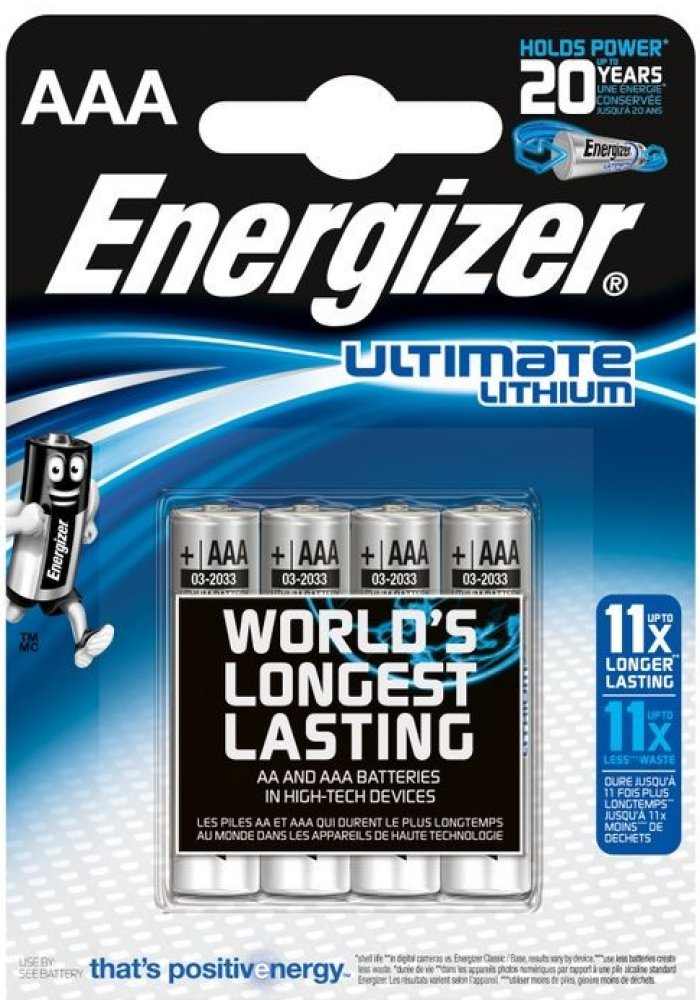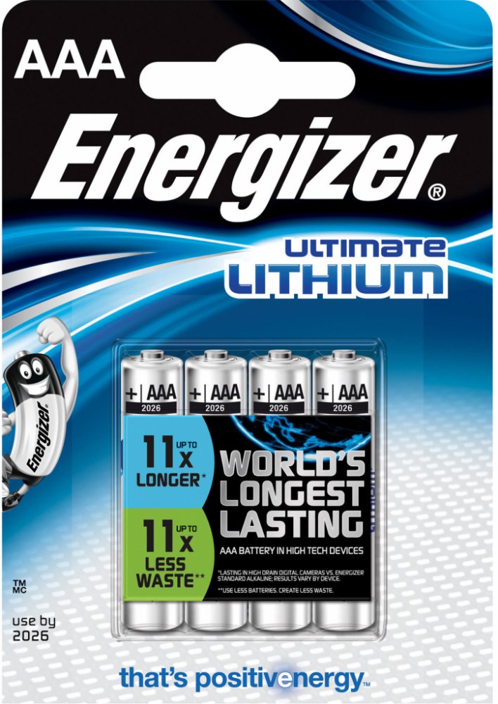 Lithiová baterie Energizer je skvělou volbou pro vaše přenosná elektronická zařízení. Ideální pro zařízení s vysokým odběrem proudu, např. digitální fotoaparáty, PDA, GPS, přehrávače MP3, DVD, vysílačky, MDA apod. Baterie jsou vyrobeny nejmodernějšími postupy z kvalitních materiálů a díky tomu je zaručen spolehlivý chod přístrojů. Baterie dává maximální výkon po celou dobu provozu. Špičková výkonnost je patrná zejména při extrémních teplotách. Tato baterie může spolehlivě pracovat při teplotách v rozmezí -40 C po +60 C. Nová baterie Energizer vydrží 11x déle než běžné baterie ostatních výrobců. Určitě také oceníte, že baterie je o 33% lehčí než běžné alkalické baterie. Neobsahuje rtuť ani kadmium, konstrukce baterie je odolná vůči úniku kapaliny.