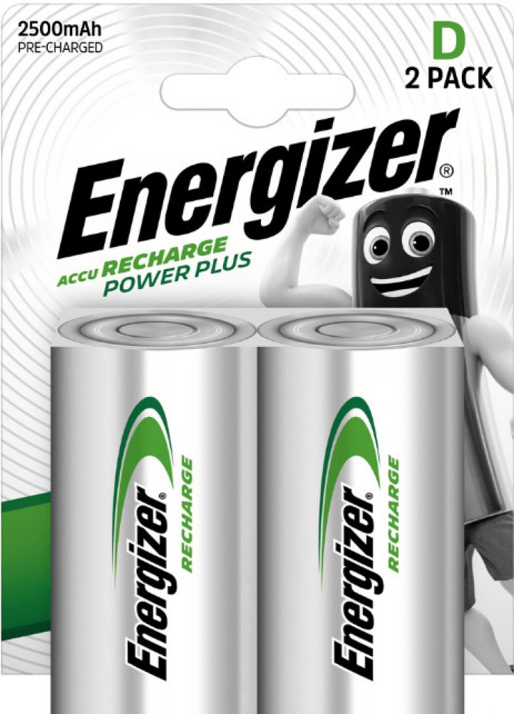 Nabíjecí baterie D / HR20 - 2500 mAh POWER PLUS Energizer Specifické vlastnosti: typ: nabíjecí baterie NiMH alternativní označení typu baterie: HR20, D, R20 kapacita: 2 500mAh chemická ochrana proti přílišnému vybití vysoký počet nabíjecích cyklů až 1000 Nejlepší značka dobíjecích baterií na světě podle údajů průzkumu trhu. Doporučeno pro: hračky detektory plašiče zvěře a škůdců telekomunikační př...
