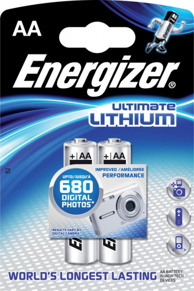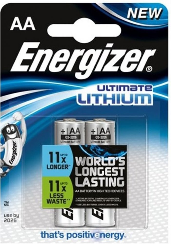 Baterie Ultimate Lithium jsou baterie typu FR6 s nejdelší výdrží na světě v technicky vyspělých přístrojích. Řada lithiových baterií pro přístroje s extrémním odběrem. Až 2x delší výdrž, až 2x méně odpadu.