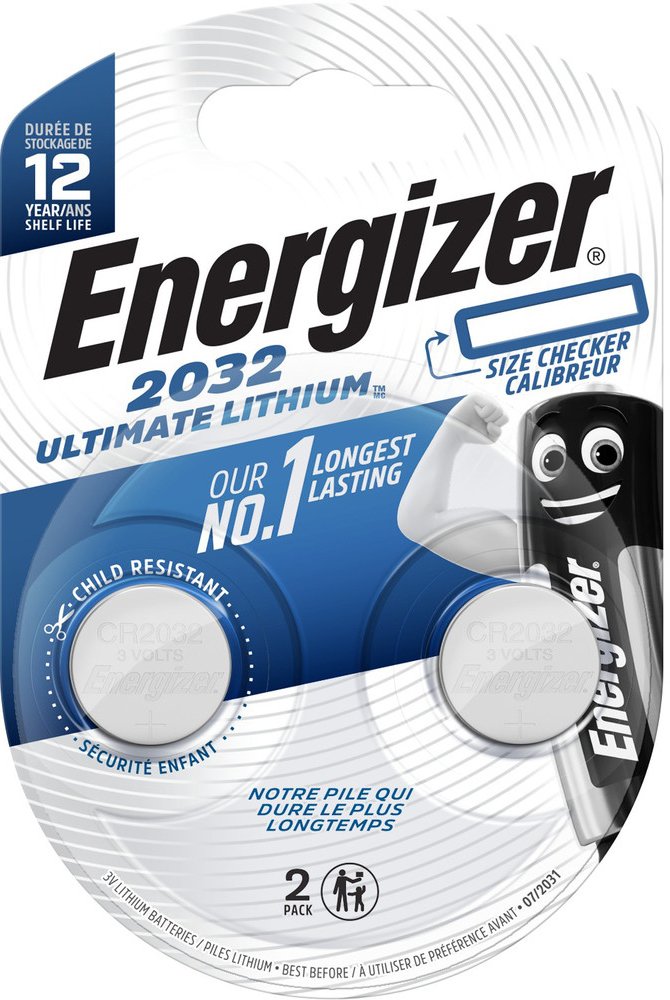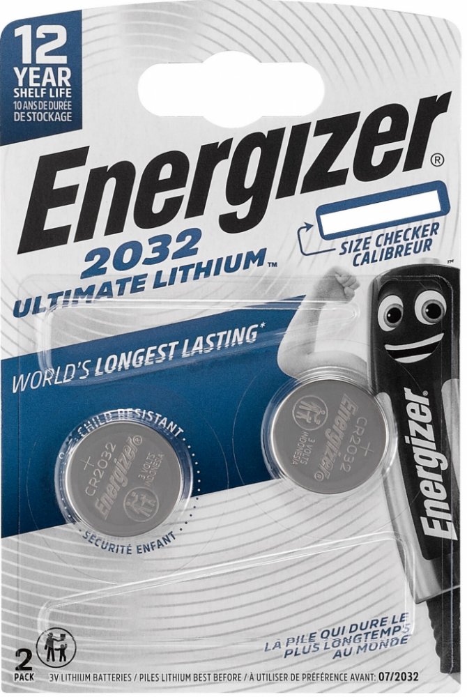 Řada baterií CR2032 Energizer Ultimate Lithium se vyznačuje vyšším výkonem než běžné knoflíkové baterie a možností použití při extrémních podmínkách -30°C + 60°C.