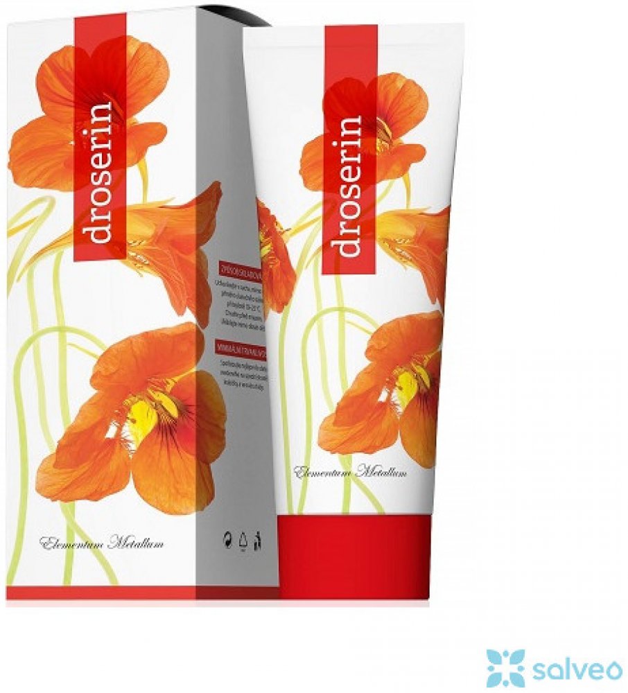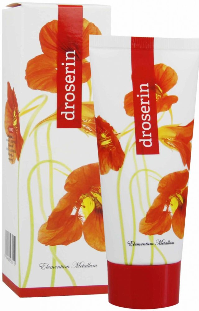 Krém Droserin se skládá z vyvážného souboru bylinných výtažků a termální vody z vřídla Podhájskí. Díky obsahu vysoce účinných látek, jako jsou vitaminy, výtažky z rašeliny a lipozomy, má silné regenerační a protizánětlivé účinky. Je používán pro svůj antivirový a antibakteriální efekt.