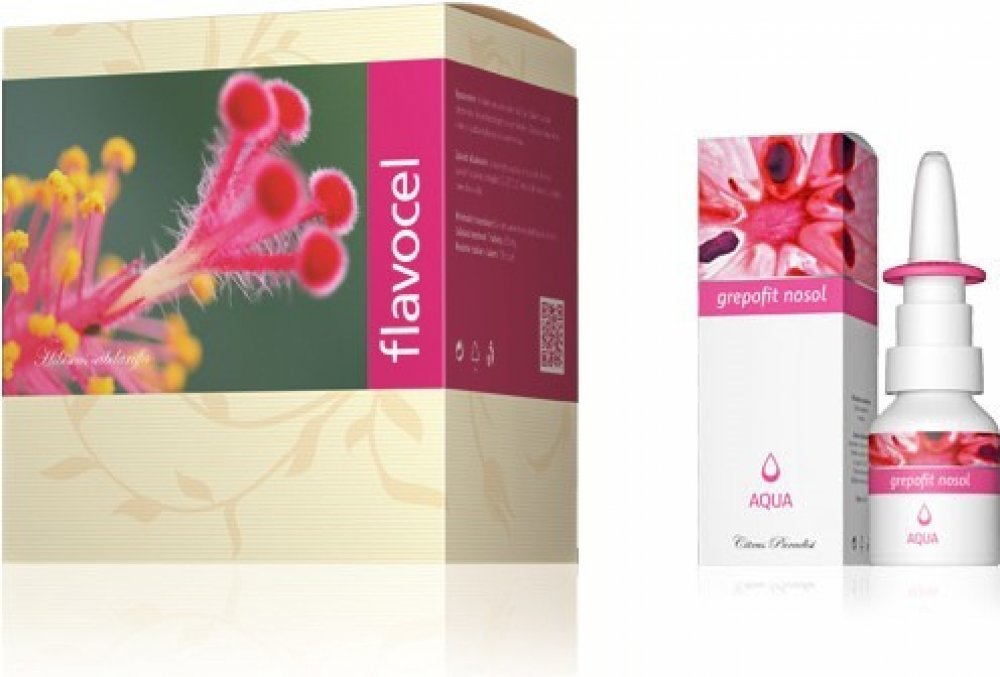- Složení: Ibišek súdánský (Hibiscus sabdariffa) je jednoletý keř z čeledi slézovitých. Je zdrojem přírodního vitaminu C, organických kyselin, fytosterolů a flavonoidů. Jeho extrakt má silný antibakteriální efekt. Podporuje imunitu, má antioxidační schopnosti. Fytosteroly snižují cholesterol a brání aterosklerotickým změnám ve stěně cév. Vzhledem k vysokému obsahu ovocných kyselin má výtažek lehce projímavý a močopudný efekt. Účinkuje příznivě proti zánětům močového měchýře, ledvin a prostaty. Vitamin C - je nezbytným doplňkem stravy, neboť si jej lidské tělo nedokáže samo „vyrobit“. Ve Flavocelu je přítomna dobře vstřebatelná, levotočivá forma vitaminu C (kyselina l askorbová). Zvýšený příjem vitaminu C je nutný u obyvatel ve městech, kuřáků, dětí v období růstu starších lidí a žen s hormonální antikoncepcí. Vitamin C plní v organismu řadu funkcí. Jedná se o významný antioxidant, posiluje imunitní systém, podporuje činnost enzymů, tvorbu hormonů a přenos nervových vzruchů. Podílí se na metabolismu železa, podporuje vstřebávání minerálů. Je nezbytný pro růst a regeneraci zubů, dásní, vaziva, cév a kostních buněk. Podporuje tvorbu kolagenu, dobré hojení ran, zlepšuje kvalitu pokožky. Důležitá je rovněž jeho „sorpční“ vlastnost – schopnost navázat a vylučovat z organismu některé toxiny a těžké kovy. Flavonoidy patří do skupiny látek zvaných polyfenoly. Jsou obsažené prakticky ve všech rostlinných buňkách, nejčastěji ve formě přírodních rostlinných barviv. V přírodě doprovázejí vitamin C. Plní u něj ochrannou úlohu a zvyšují jeho účinek. Přírodní flavonoidy vykazují účinky antivirové, antibakteriální, antioxidační a protizánětlivé. Medicína jejich syntetické formy využívá pro výrobu léků na křečové žíly a hemoroidy. Flavonoidy pozitivně ovlivňují metabolismus cholesterolu a tuků v organismu. Snižují riziko vzniku aterosklerózy, srdečního infarktu a mozkové mrtvice. Příjem potravin obsahujících přírodní polyfenoly může chránit organismus před nádory plic, trávicího traktu, prsu a prostaty. Stévie sladká je tropická rostlina, používá se jako nekalorická náhražka cukru. Přirozeně sladí, snižuje krevní tlak, reguluje činnost slinivky břišní a pomáhá stabilizovat hladinu cukru v krvi. Nemá vliv na kazivost zubů. Směs éterických olejů - Eukalyptus – silice z dřeva a listů působí dezinfekčně, podporuje vykašlávání a snižuje horečku. Extrakt z grapefruitových jadérek – účinkuje proti virům, baktériím a plísním. Využíván je u infekcí dýchacího ústrojí, urologických i gynekologických zánětů. Kardamom – plody působí dezinfekčně, protizánětlivé a močopudně. Kopaiva – silice dezinfikují sliznice průdušek, plic a močových cest.