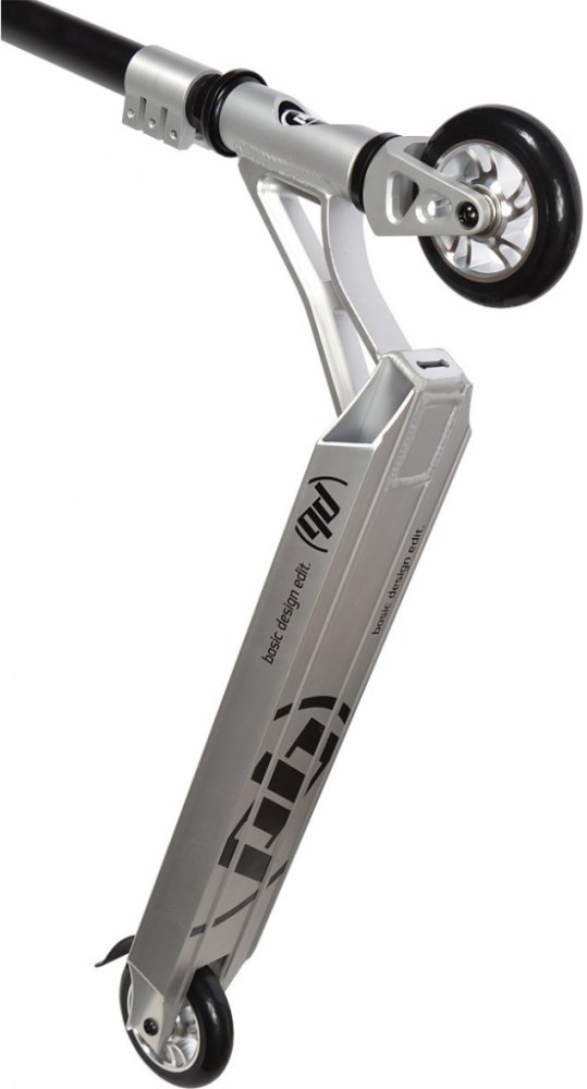 Koloběžka PB SILVER je velmi lehká a zároveň je vybavena velmi pevnou a odolnou konstrukcí, která umožňuje extrémní jízdu, provádění triků a skoků.