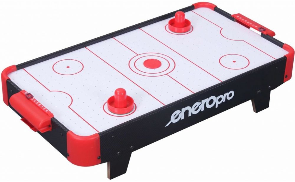 Vzdušný hokej Enero Pro Air Hockey poskytne skvělou zábavu dětem i dospělým a skvěle se hodí do dětského pokojíčku, na večírky a oslavy nebo na zahradní grilovačku. Přenosný hokejový stůl je univerzální a umístíte jej na kuchyňský stůl, na podlahu, ale i zámkovou dlažbu. Tato hra pro dva hráče je vybavena bateriovým ventilátorem, který fouká vzduch nahoru a nadnáší puk. Cílem hráčů je, stejně jako v reálném hokeji, dostat puk do soupeřovy branky. Za každou branku získá hráč bod a hráč s nejvíce body vyhrává zápas. Zaoblené hrany zajistí bezpečnost hráčů při rychlých akcích, na obou stranách hokejového stolu jsou připevněna ruční počítadla pro indikaci získaných bodů hráčů. S touto hrou si natrénujete postřeh, taktiku i dobré míření. Stůl je napájen 3 bateriemi AA, které nejsou součástí balení. Vzdušný hokej Enero Pro Air Hockey je vhodný pro děti od 3 let. Klíčové vlastnosti vzdušného hokeje Enero Pro Air Hockey 60 × 32,5 × 14 cmStolní varianta hokejeZábava pro celou rodinu, zaujme...