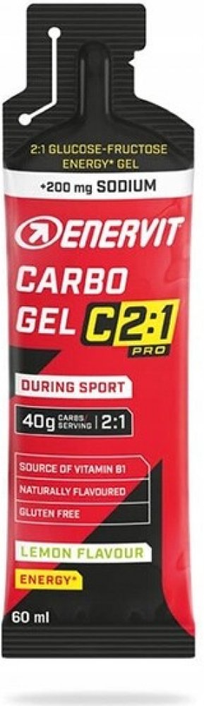 Enervit S.p.A. 76 g 60 ml s více než 35 g sacharidů s vysokým obsahem kofeinu 161 kcal 16 g glukóza:fruktóza 2:1 Na 200 mg mg 1-2 gely za hodinu během výkonu