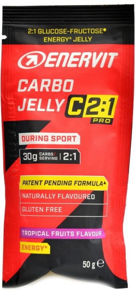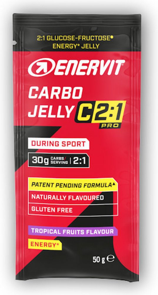 Energetické bezlepkové želé s obsahem 30 gramů sacharidů (glukóza:fruktóza v poměru 2:1) a vitaminem B1 pro příjem energie během dlouhotrvajícího nebo vysoce intenzivního výkonu. Novinka v příjmu energie během výkonu od Enervitu. Příchuť tropické ovoce.