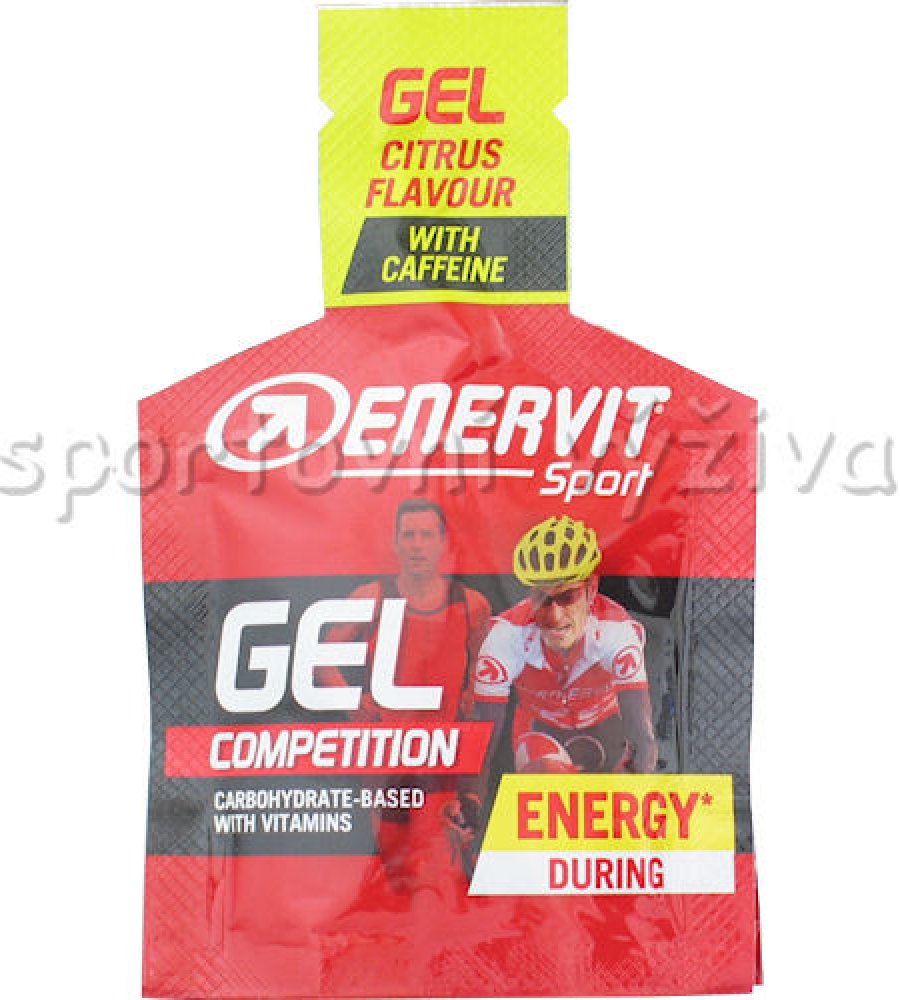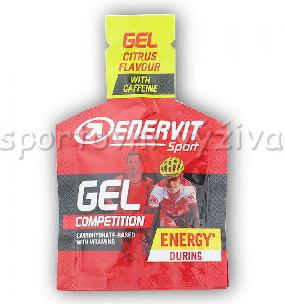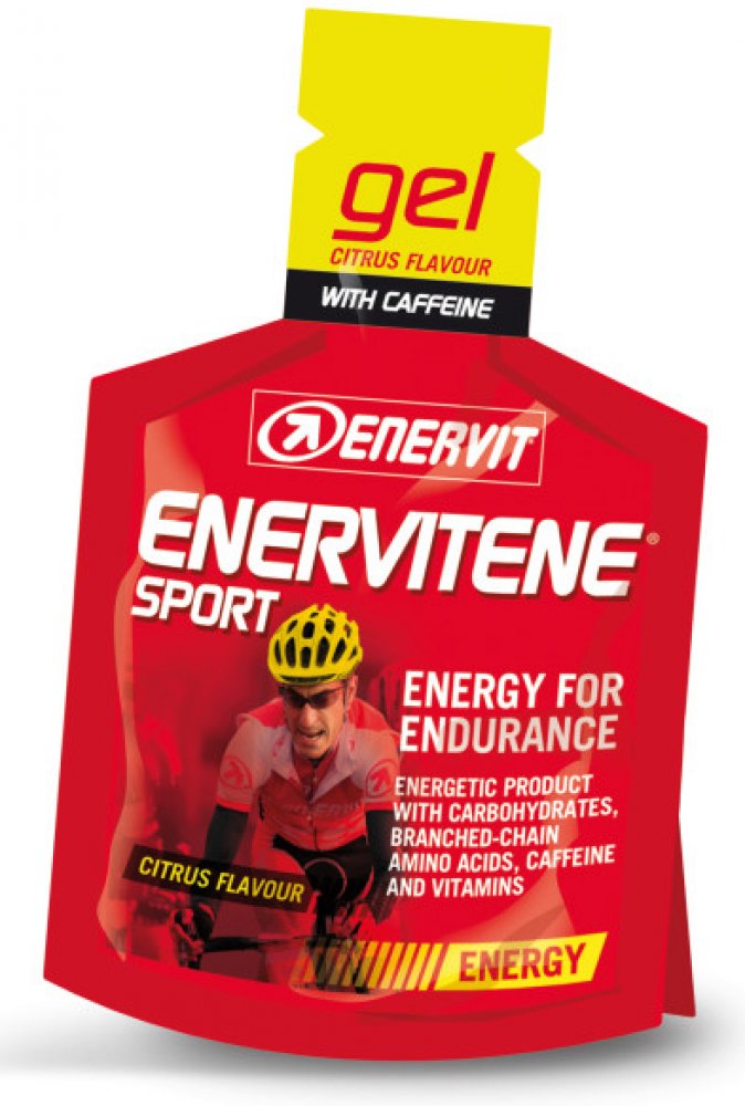 Enervitene Sport Gel zaručuje okamžitý a dlouhodobý přísun energie bez zvýšení glykemie. Obsahuje fruktózový a glukózový sirup, maltodextrin, L-leucin, L-isoleucin, L-valin, vitaminy: niacin, B6, B2, B1, kofein.