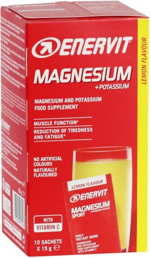 Enervit 10 tbl sypké prášky fyzická výkonnost unisex 150.0 g Enervit pro dospělé perorální Citron hořčík sport a fitness 10 160.0 mg Kdykoliv 1 za den Suché místo + pokojová teplota, Mimo dosah dětí s vitamínem C