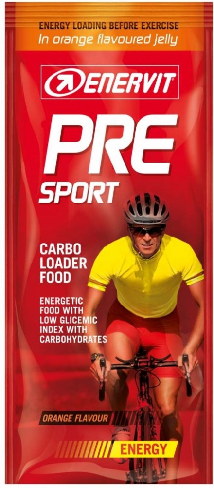 Lehce stravitelné želé, které nastartuje energetické systémy pro sportovní výkon, zamezuje pocitům hladu a zabezpečuje dlouhodobé uvolňování energie. Optimalizuje hladinu krevního cukru, čímž zamezí nástupu nežádoucí hypoglykémie před výkonem. Obsahuje fruktózu a isomaltulosu, sacharidy s postupně se uvolňující energií. Použitá kombinace sacharidů podporuje využití tuku jako zdroje energie. Enervit PRE SPORT je lehce stravitelný.
