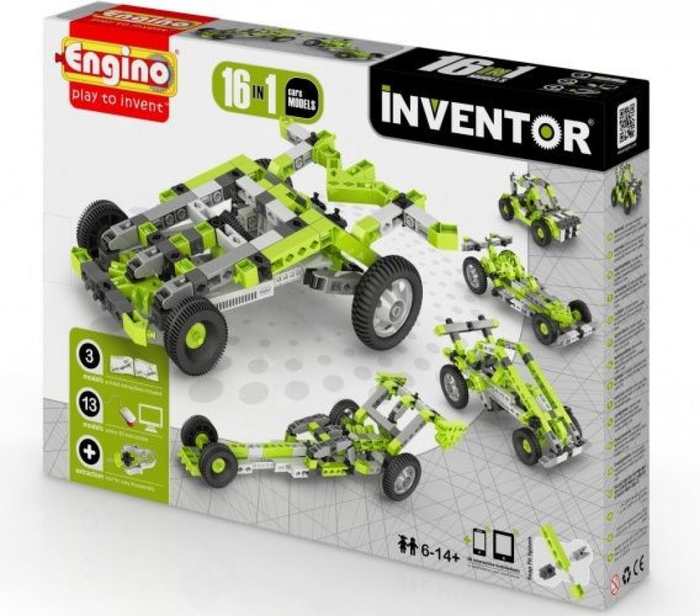 Stavebnice Engino Inventor 16 modelů aut - pomocí této mechanické stavebnice si užijete neskutečnou porci zábavy s kabriolety, kupé, MINI, formulemi, Nitro a Dune Buggy či zažijete rekordní rychlost s Dragstery.