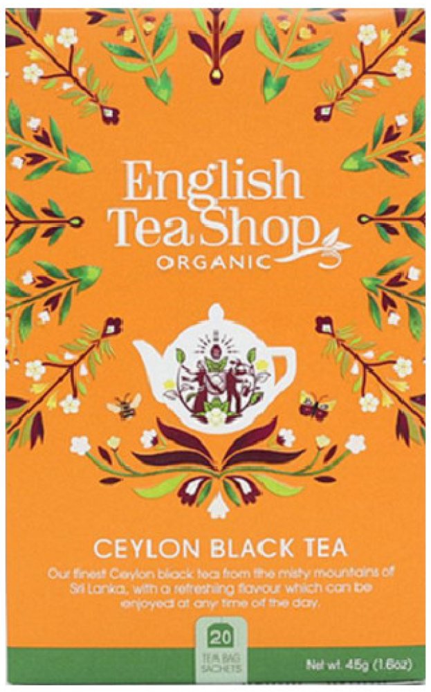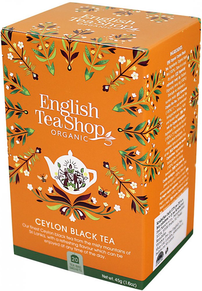 English Tea Shop je britská společnost, založená roku 2010, která dodává 100 % organické čaje, bez syntetických příchutí a barviv. Značka nese certifikáty bio a fairtrade kvality, veškerý obalový materiál i samotné čajové sáčky jsou biologicky odbouratelné a recyklovatelné, výroba je zcela bezuhlíková.