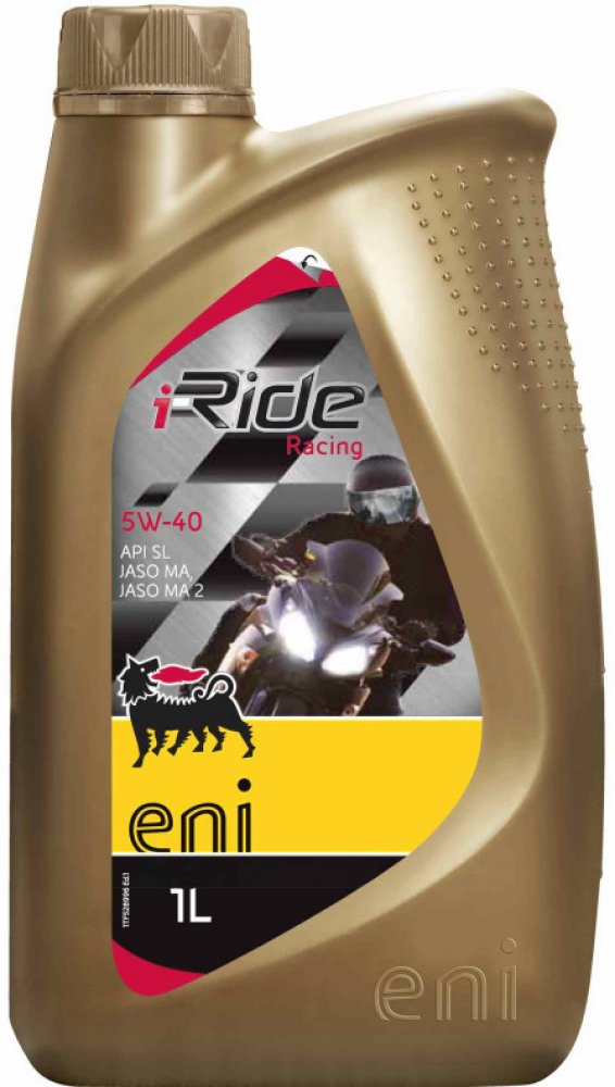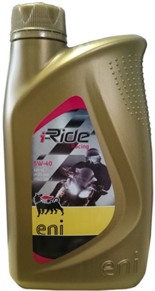 Eni i-Ride Racing (Eni i-ride Moto2) je plně syntetický motorový olej vyvinutý, testovaný a používaný na závodních okruzích kategorie Moto2. Eni i-Ride Racing (Eni i-ride Moto2) je doporučený olej pro moderní čtyřtaktní motocykly poslední generace s multiventilovou technologií. Viskozitní třída oleje Eni i-Ride Racing (Eni i-ride Moto2) umožňuje zvýšení výkonu motoru a snadný studený start. Je vyroben na esterové bázi. Má vynikající střihovou i viskozitní stabilitu. Speciální formulace zajišťuje nejvyšší výkonnost s ohledem na detergentně dispergační vlastnosti, ochranu proti korozi, zabránění pěnění, stabilitu proti oxidaci a schopnost ochrany před opotřebením. Esterové složky oleje zajišťují dokonalé přilnutí olejového filmu ke kovovým součástem motoru i při delší odstávce. Doporučuje se zejména pro provoz ve velmi náročných podmínkách a soutěžích, kde se vyžaduje vysoký výkon a maximální ochrana motoru.Ověřeno v závodech kategorie Moto2.