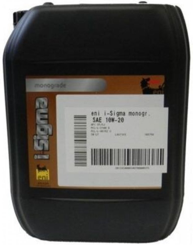 Řada eni i-Sigma monograde má vynikající detergentní vlastnosti, což je zvláště vhodné pro použití v přeplňovaných motorech. Má také vysoké disperzantní vlastnosti. Mazivo je velmi odolné proti vzniku laků a fermeží, stejně jako kalů a ostatních úsad v motorech. To zabraňuje lepení pístních kroužků a udržuje v čistotě písty při zachování potenciálních úsad v suspenzi. Má odolnost vůči stárnutí, a to zejména proti oxidaci vznikající při dlouhodobém vysokoteplotním provozu za přítomnosti vzduchu a dalších látek. Má obzvláště dobré protikorozní vlastnosti , které účinně chrání povrch motoru před korozi při spalování vlhkostí a kyselin. Její protiotěrové vlastnosti zajišťují dlouhou životnost pohyblivých dílů a výrazně snižují potřebu pro servis a opravy motorů. Viskozní třída SAE 10W-20 je vhodná pro použití v hydraulických systémech traktorů, nakladačů, buldozérů atd., vyžadující tento typ oleje. Eni i-Sigma monograde 10W-20 je mazivo pro vznětové motory s atmosferickým sáním a přeplňované vznětové motory, které pracují za středně obtížných provozních podmínek.