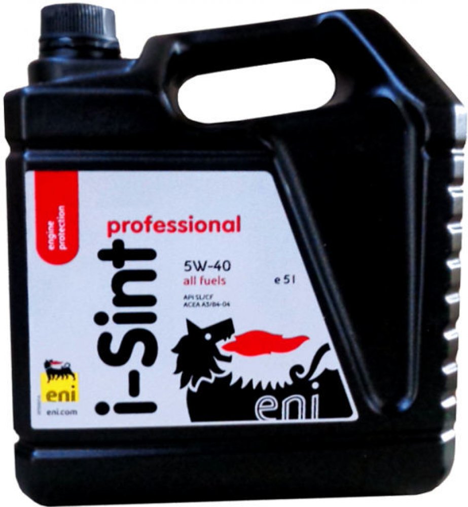Syntetický motorový olej s vysokým výkonem, navržený k mazání vozů nejnovějších modelů, poháněných buď zážehovým nebo vznětovým motorem a používaných i za nejnáročnějších podmínek. Viskozita produktu eni i-Sint professional 5W-40 zůstává prakticky neměnná během nárůstu najetých kilometrů, což zachovává původní vlastnosti produktu. Syntetická formulace s vysokou tepelnou stabilitou snižuje spotřebu oleje následkem odpařování. Eni i-Sint professional 5W-40 má vynikající detergentně-dispergantní schopnosti a minimalizuje vznik laku a fermeže, stejně jako kalů a jiných usazenin. Díky tomu tento olej pomáhá zabraňovat slepení pístních kroužků a udržuje písty čisté, přičemž udržuje případné usazeniny mimo. Eni i-Sint professional 5W-40 volně teče za nízkých teplot, což umožňuje snazší start motoru.