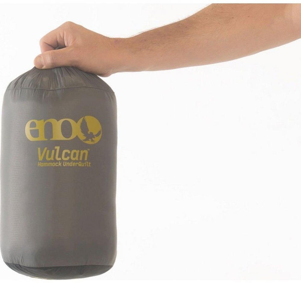 ZATEPLOVACÍ OBAL PRO VAŠI HAMAKU z hřejivého primaloftu Izolační termo ochrana Vulcan UnderQuilt od značky ENO je "spacákem" pro vaši hamaku. Je vyroben ze dvou vrstev hřejivého vlákna Primaloft® Gold, který zachytí a udrží tělesné teplo. Díky tomu můžete pohodlně spát v houpací síti i v chladných nocích. Navíc má vodoodpudivou úpravu, takže vás nezaskočí ani déšť nebo první sněžení. Underquilt je také vybaven plně nastavitelným upínám, díky kterému je kompatibilní s jakoukoli hamakou ENO (kromě modelu SkyLoft). VLASTNOSTI IZOLACE vulcan UNDERQUILT: Přizpůsobí se jakékoliv spánkové poloze, doporučené použití při teplotách -1 až 10°C, ideální pro výšku postavy do 190 cm, součástí je velký skladovací pytel a kompresní transportní obal.