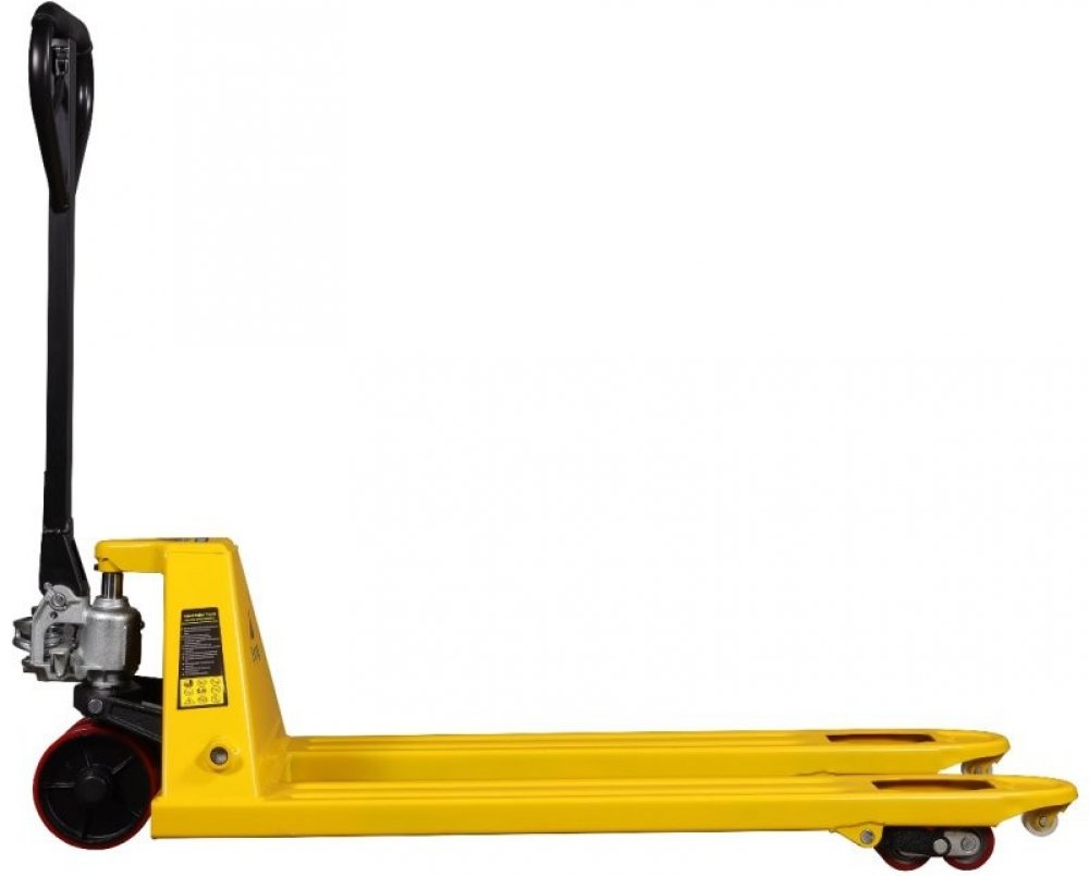 Ruční paletový vozík, rozměry výška 1220 x šířka 550 x hloubka 1510 mm, nosnost 3000 kg, šířka vidlic 550 mm, délka vidlic 1150 mm.