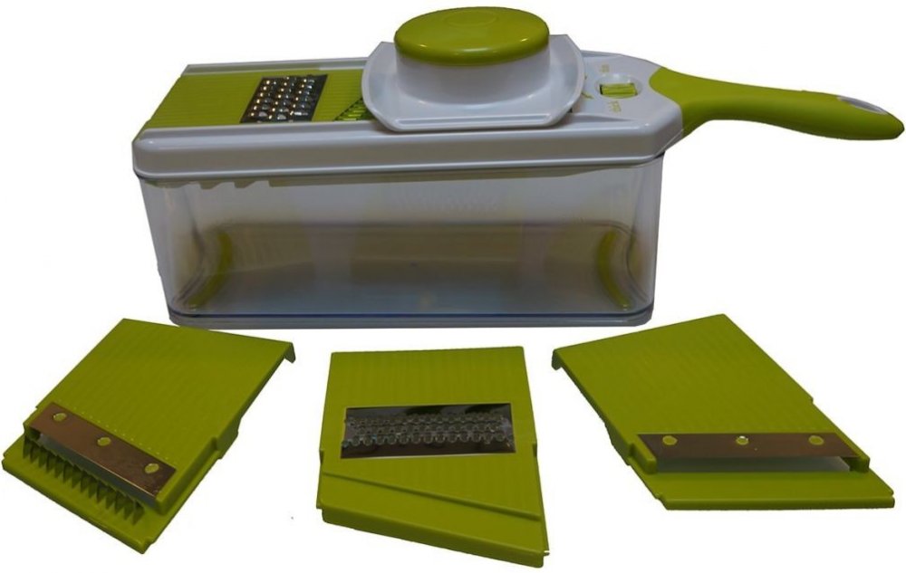 S tímto nastavitelným mandolinovým struhadlem od společnosti Enrico připravíte salát nebo zeleninu na lahodnou polévku, salsu či guláš během několika minut. Nastavitelné struhadlo je ideální pro krájení, strouhání, krouhání a julienne. Čtyři výměnné čepele, které jsou součástí balení, vám nabízejí nespočet možností přípravy vašich oblíbených pokrmů. Pomocí praktického ovládacího kolečka snadno nastavíte požadovanou tloušťku plátků, takže můžete krájet, strouhat a strouhat podle potřeby a připravovat své oblíbené pokrmy. Pokrmy budou padat přímo do přiložené mísy, což znamená, že můžete ušetřit čas a zároveň udržovat kuchyň v čistotě. Mísa tohoto nastavitelného kráječe má protiskluzovou základnu. Součástí dodávky je pero na julienne, nástavec na krájení, struhadlo a nástavec na strouhání a také mísa.Barva: zelenáMateriál: plastRozměry: 38,1 x 12,3 x 11,9 cm (d x š x v)4 vyměnitelné krájecí nože3 nastavení kráječe3 nastavení tužky julienneS kolečkem pro nastavení tloušťky požadovaných plátkůProtiskluzová základnaMěkká rukojeťmísa o objemu 1,5 litruDodávka obsahuje: Součástí balení jsou tužky na julienne, kráječ, struhadlo, struhadlo a mísa S nastavitelným mandolinovým struhadlem Enrico si doma během chvilky připravíte ty nejchutnější saláty, syrovou zeleninu a mnoho dalšího! S nastavitelným mandolínovým struhadlem můžete strouhat, sekat a krájet. Čtyři vyměnitelné vložky poskytují obrovskou možnost výběru při přípravě jídla. Pomocí přepínače můžete určit tloušťku řezů. Zeleninu nebo ovoce nakrájejte nebo nastrouhejte přesně tak, jak chcete! Potraviny po nakrájení padají přímo do sběrné misky, takže kuchyně zůstane čistá a vy ušetříte čas. Ochranný kryt zajišťuje optimální bezpečnost. Měkká rukojeť nabízí protiskluzovou ochranu. Dno je navíc opatřeno protiskluzovými cvočky. Kráječ zeleniny lze mýt v myčce na nádobí. S nastavitelným mandolinovým struhadlem Enrico nastrouháte salát, zelí a mnoho dalšího během několika minut. Nastavitelné struhadlo je vhodné pro krájení, hoblování, strouhání a julienne. Čtyři vyměnitelné čepele vám poskytnou spoustu možností při přípravě pokrmů. Díky přepínači si můžete nastavit tloušťku plátků. To znamená, že můžete krájet, řezat a strouhat potraviny tak, jak vám to nejlépe vyhovuje. Potraviny padají přímo do mísy, což znamená, že ušetříte čas a vaše kuchyně zůstane čistá. O optimální bezpečnost se stará systém Food Guard. Měkká rukojeť poskytuje protiskluzovou ochranu. Nastavitelná čepel obsahuje protiskluzovou základnu.
