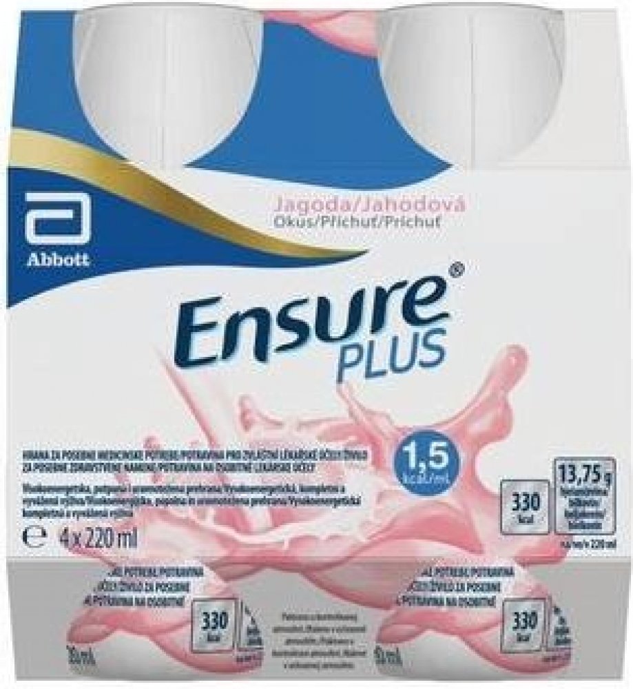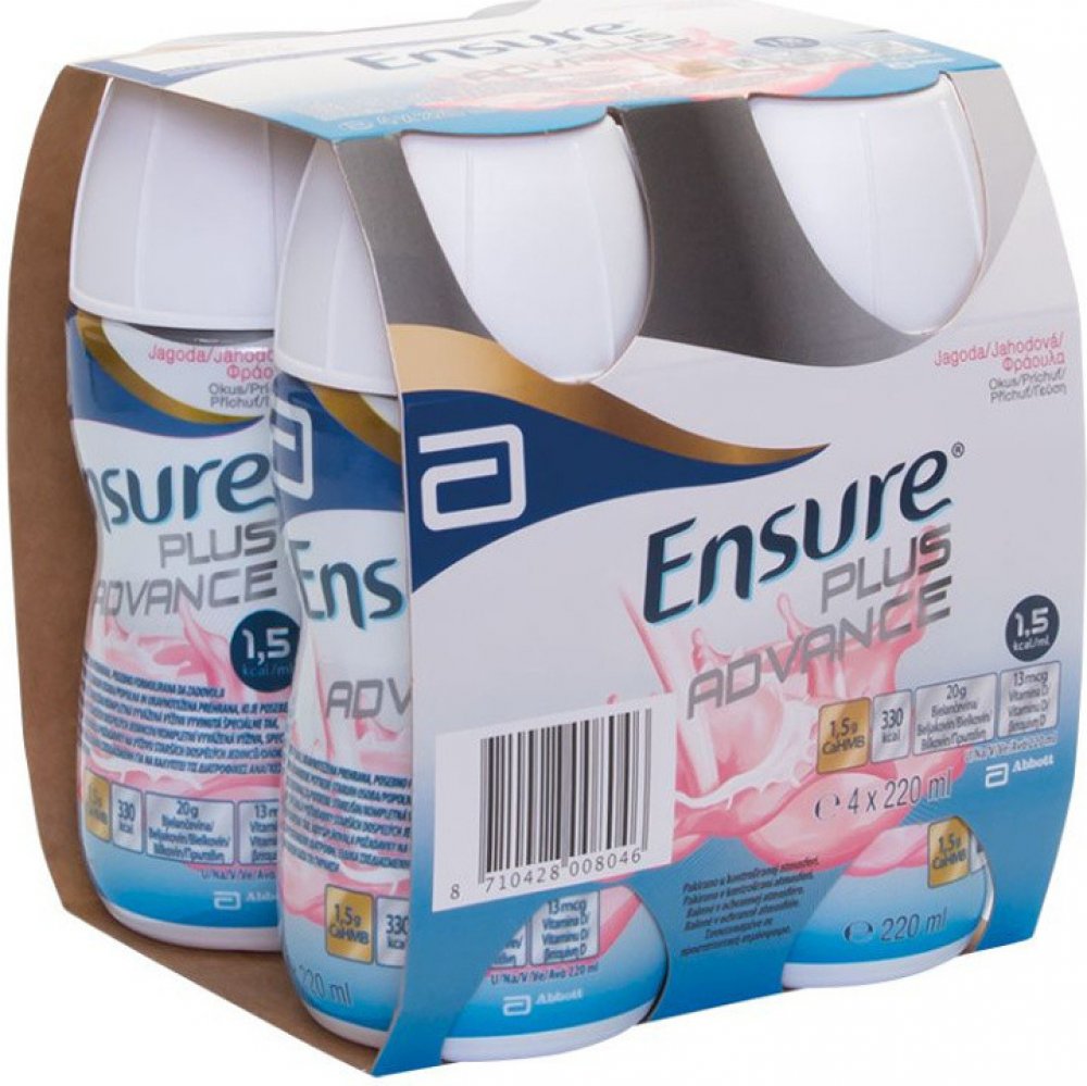Vysoce kalorická, kompletní a vyvážená perorální výživa bohatá na bílkoviny a vitamin D s obsahem FOS (fruktooligosacharidy) a CaHMB (monohydrát beta-hydroxy-beta-metylbutyrátu vápenatého). Výživa Ensure Plus Advance je určena pro všechny dospělé pacienty v riziku podvýživy nebo riziku ztráty svalové hmoty, svalové síly nebo svalové funkčnosti kvůli nemoci, úrazu nebo operaci jako nedílná součást ...